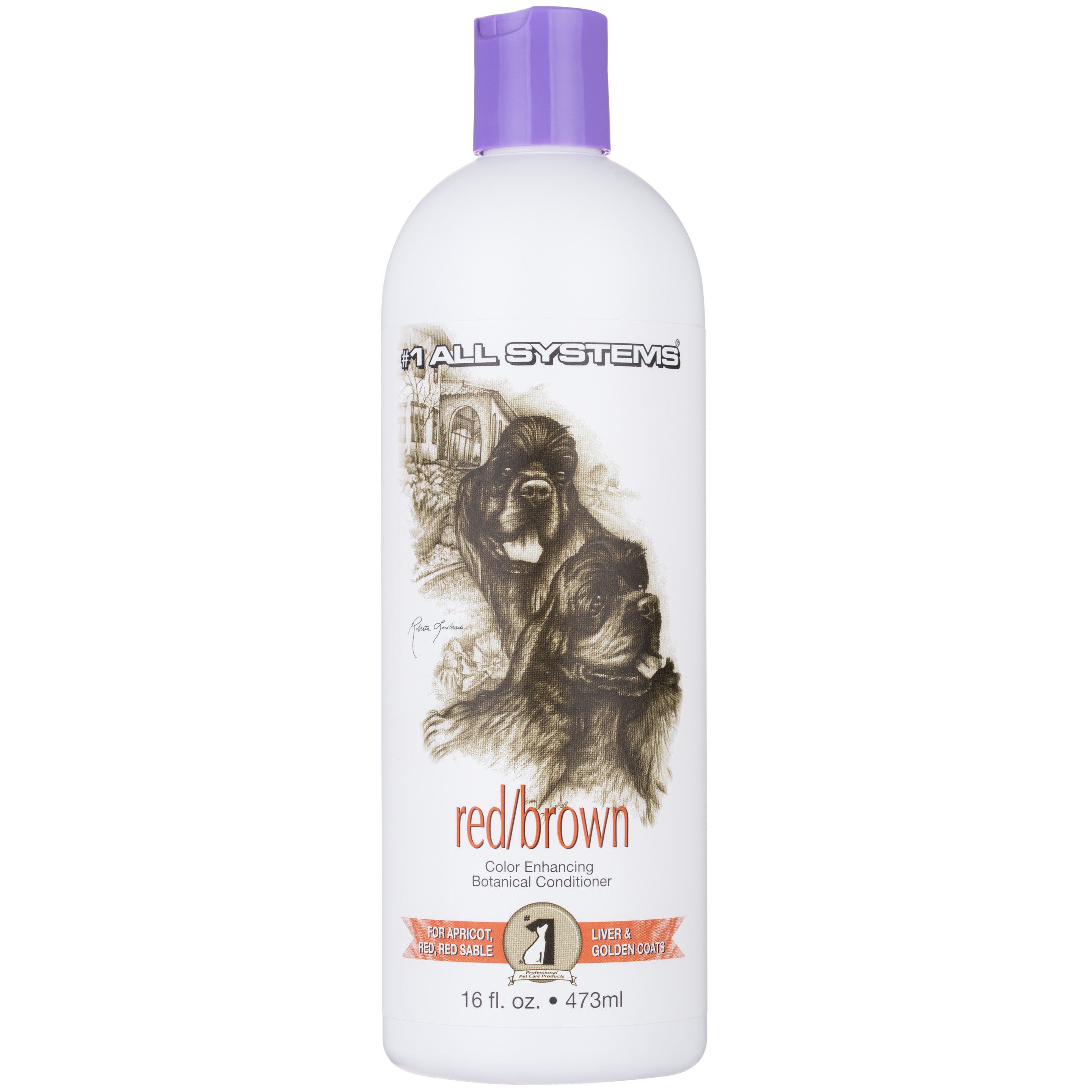 Enhance your dog's coat color and texture with this color-enhancing conditioner based on plant extracts, perfect for brown, dark gold, and apricot dogs.