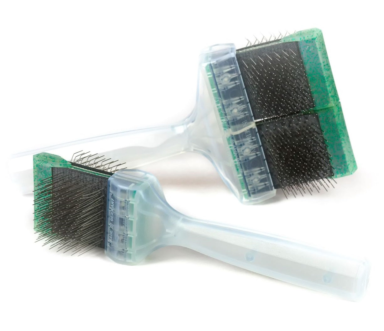 The Activet Brush is a professional line of excellent, double-sided brushes, known and appreciated worldwide by groomers, breeders, and pet owners. Its unique, flexible head and the appropriate density and curved shape of the needles make it the perfect tool for daily pet care! These brushes have been consistently manufactured in Germany since 1998 and are still considered among the best available tools for pet grooming.