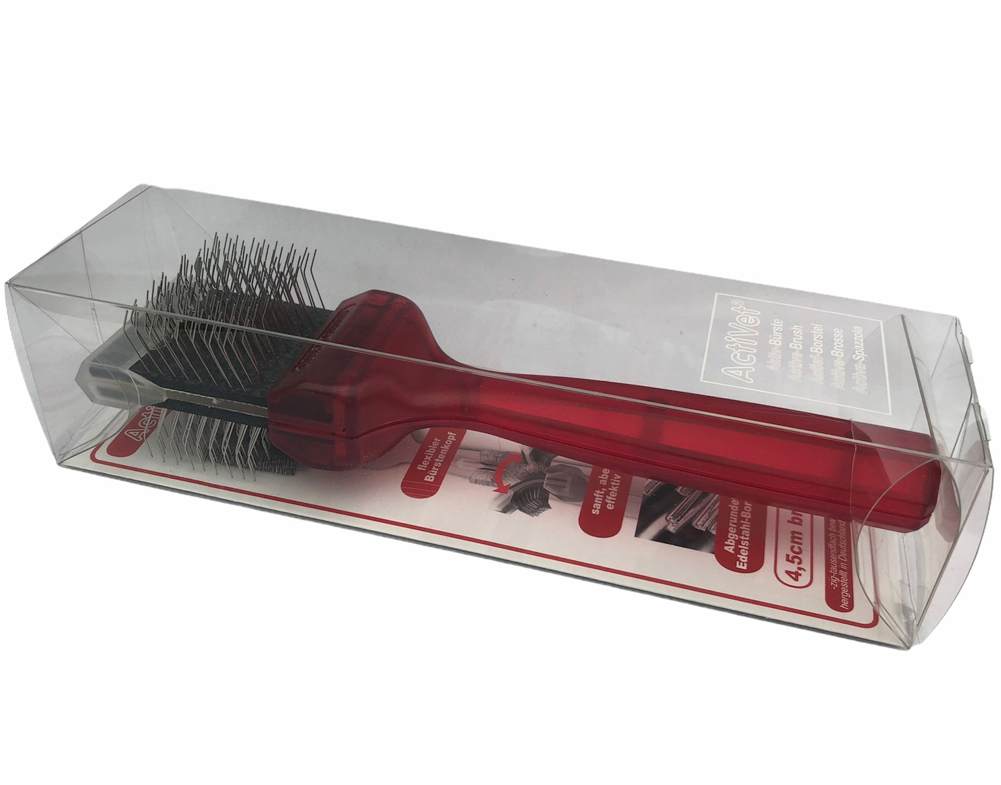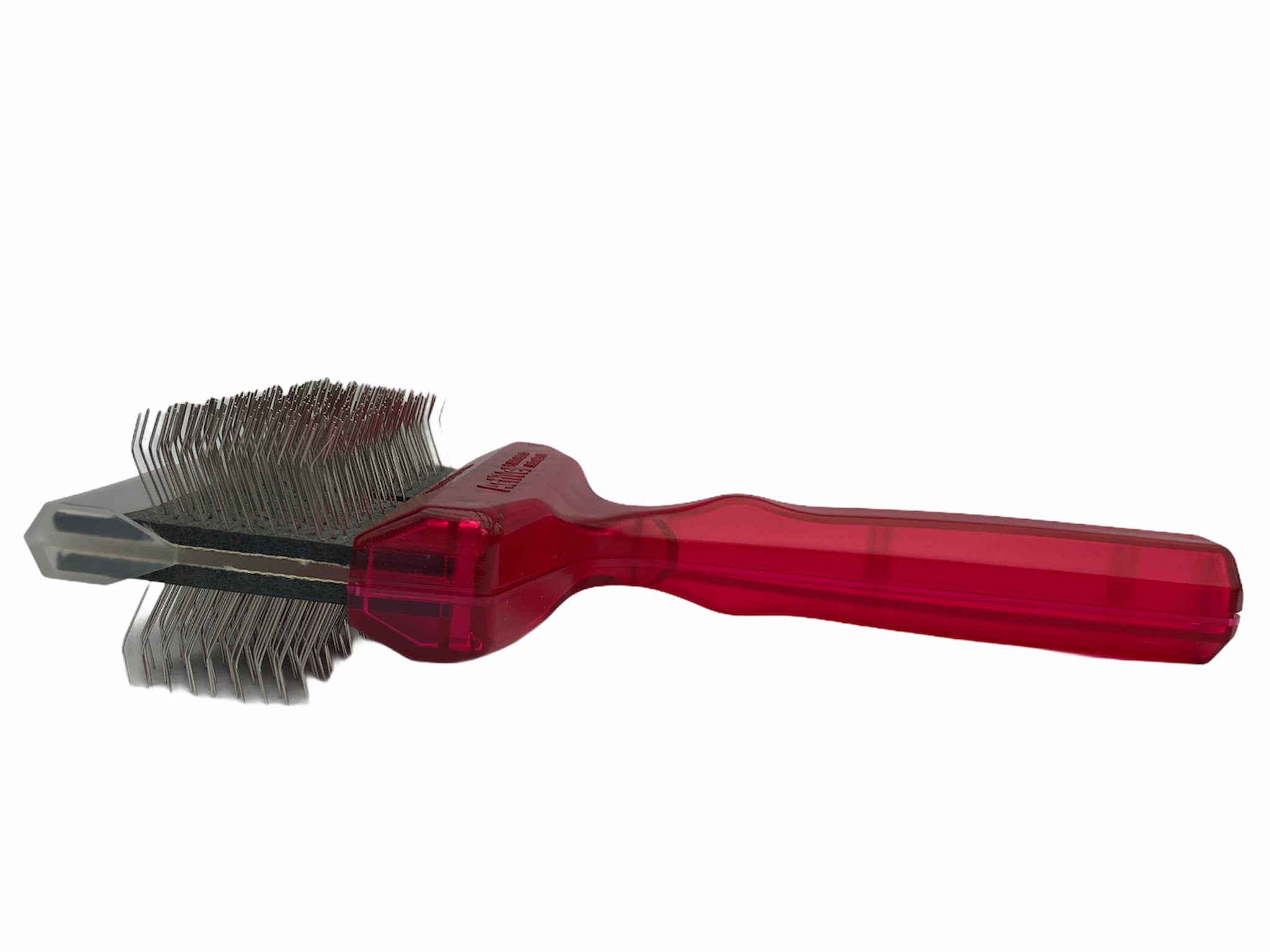 The Activet Brush is a professional line of excellent, double-sided brushes, known and appreciated worldwide by groomers, breeders, and pet owners. Its unique, flexible head and the appropriate density and curved shape of the needles make it the perfect tool for your pet's daily grooming! These brushes have been consistently manufactured in Germany since 1998 and are still considered among the best available tools for pet grooming.