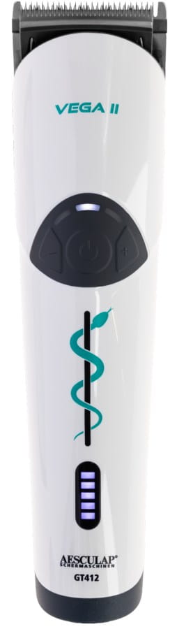 The Aesculap Vega II is a cordless/cordless small animal clipper, ideal for trimming small areas such as the back, neck, belly, head, and muzzle of a dog. It has 3 speed settings that allow the user to adjust the cutting speed to individual needs, whether for a precise shave or a quick trim.