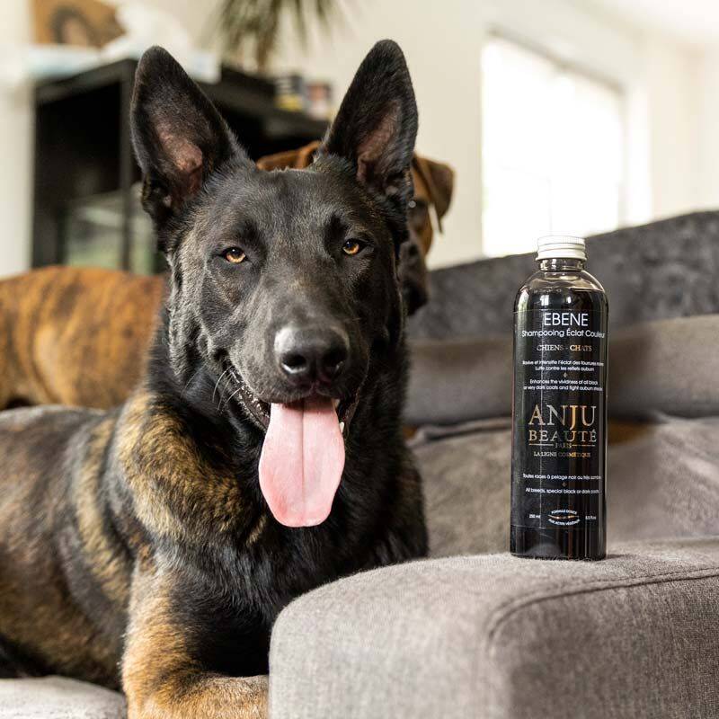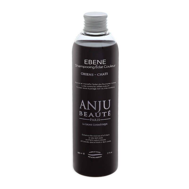 The Anju Beaute Ebene shampoo is designed to strengthen and enhance the shine of black or dark fur while providing caring benefits for your pet's coat.