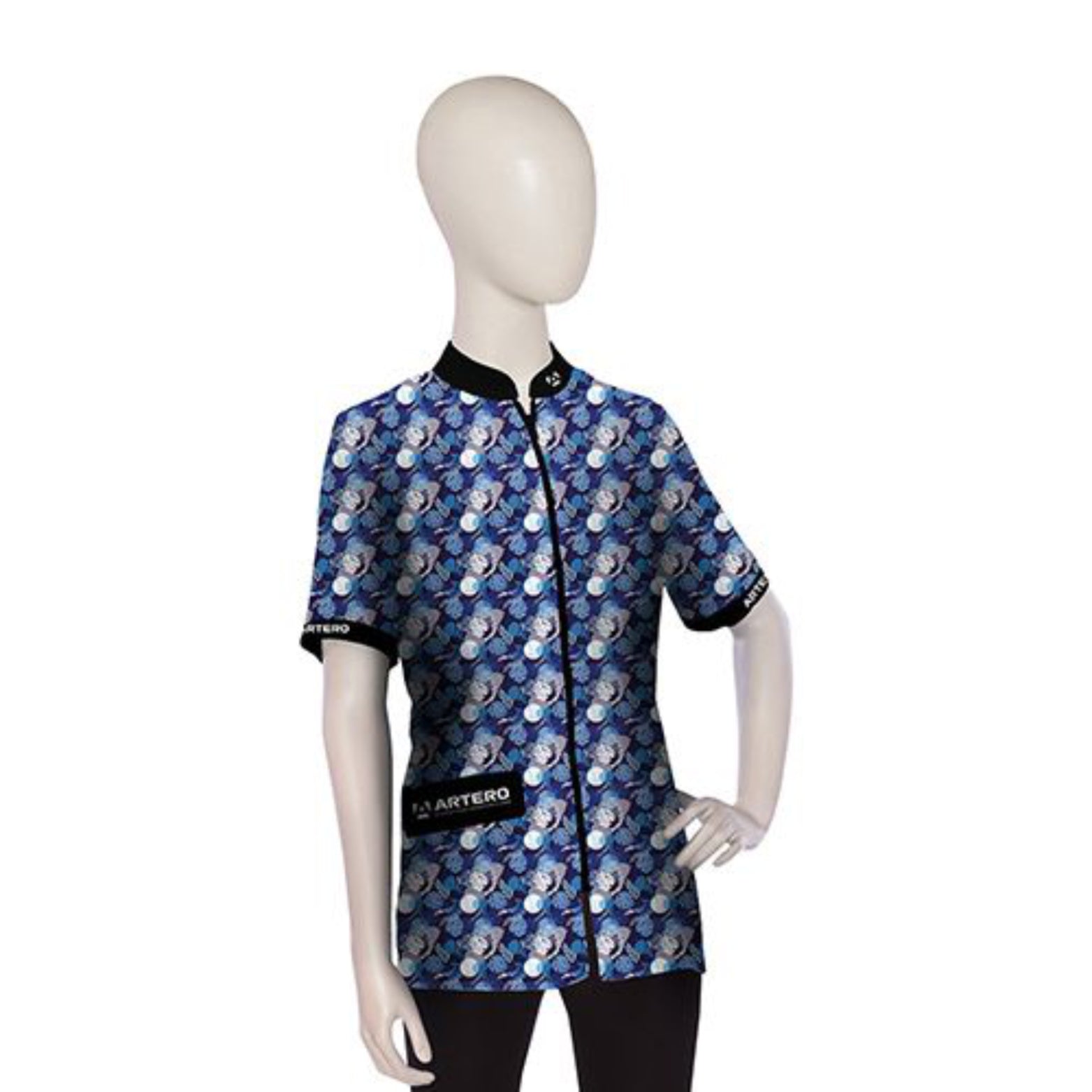 A classic-cut grooming sweatshirt with a stand-up collar and floral Monstera leaf motif, perfect for grooming salons or veterinary offices.... Read more