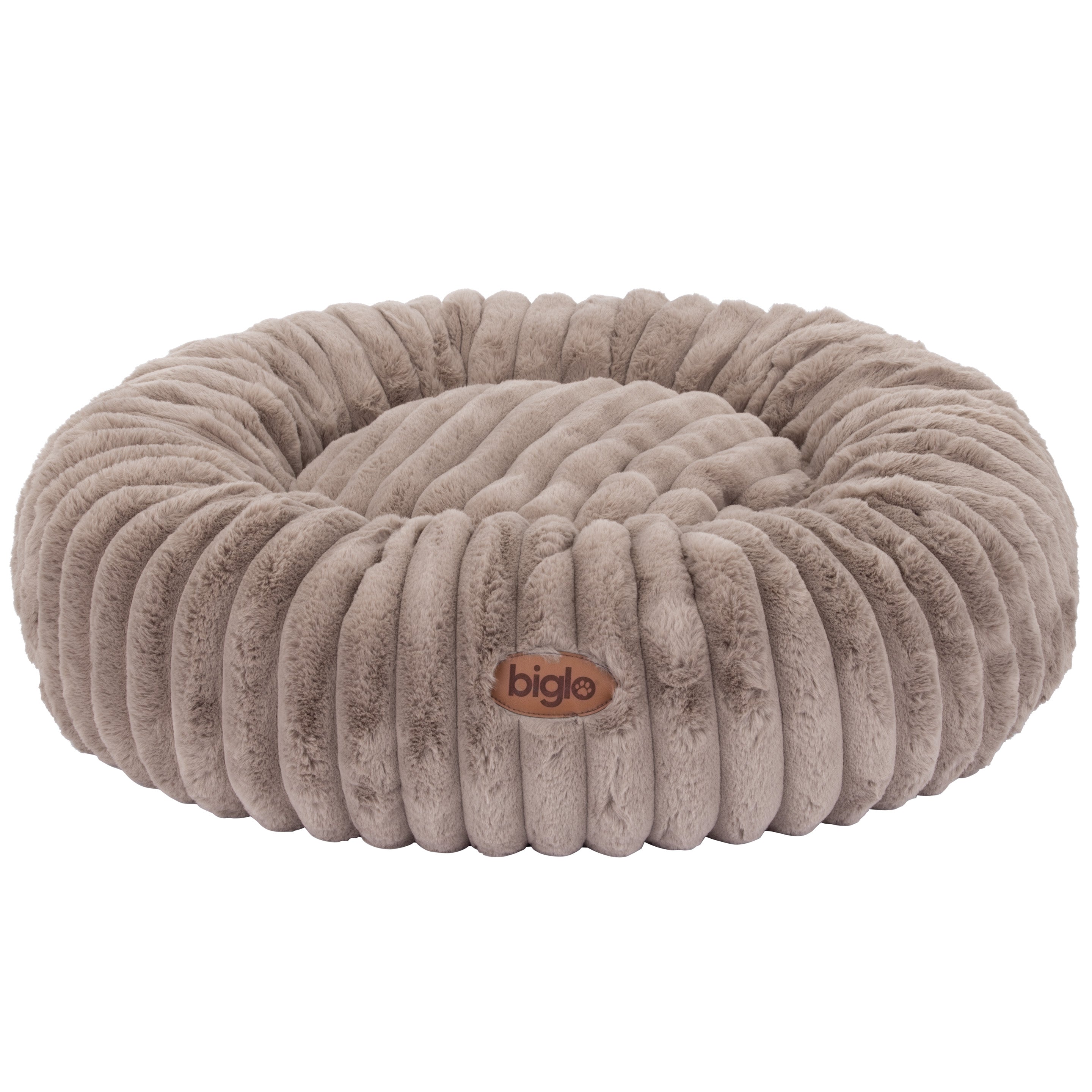 The Biglo Cobe Donut is a soft and fluffy dog bed in a beautiful mocha color. Made of a pleasant-to-touch material with a unique structure and wide stripes, it ensures your pet's comfort and healthy sleep. Every dog should have their own place at home where they feel safe and comfortable. The Biglo Cobe will provide your friend with the perfect environment for rest, relaxation, and play. This cloud-soft bed will become your pet's favorite place.