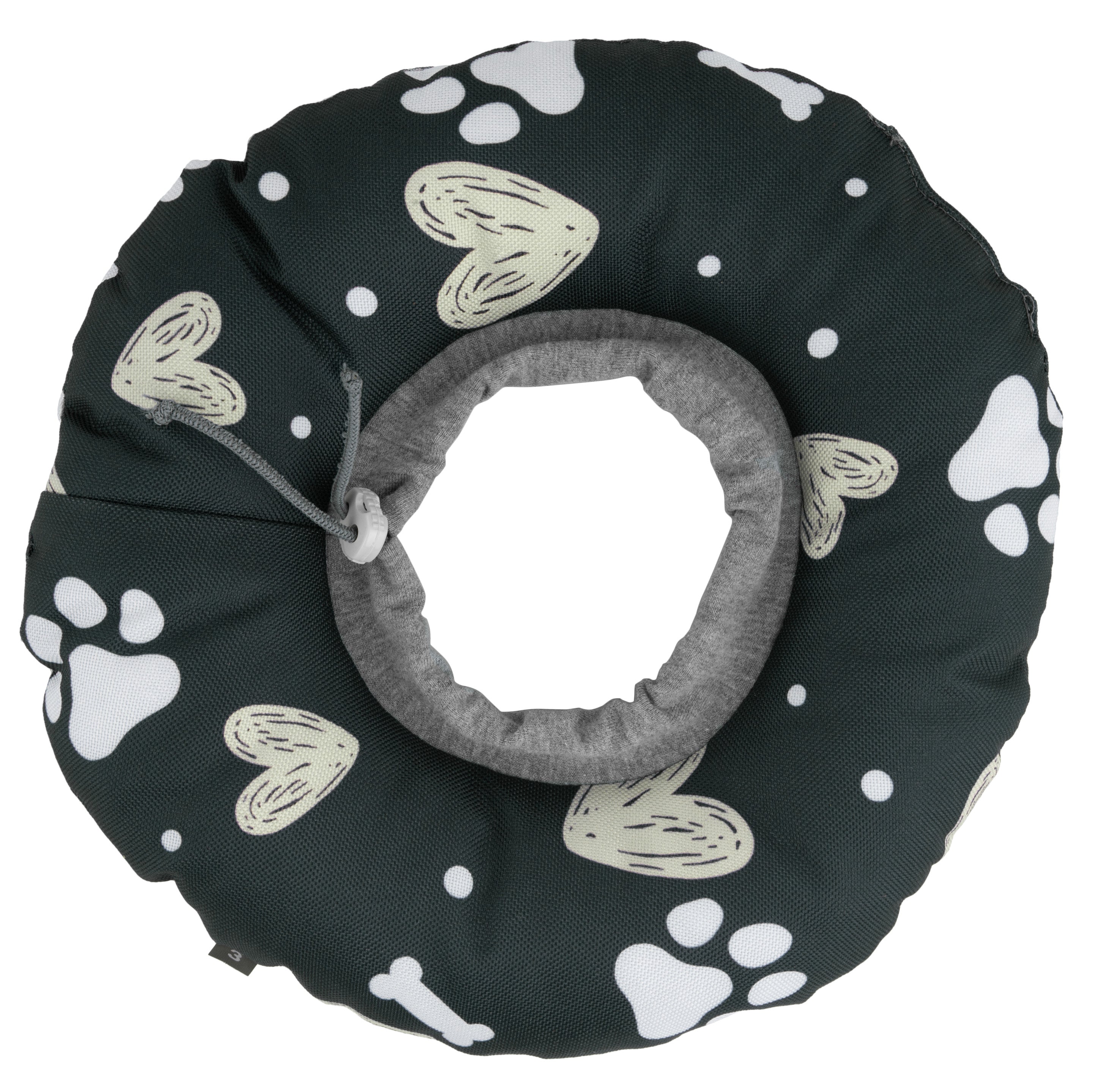 The Biglo Pet Recovery Soft Cone Dark Gray is a soft, fabric-based post-operative collar for dogs and cats, resembling a "doughnut." This collar is made of durable, waterproof fabric that provides comfort for your pet while preventing them from licking or biting post-operative wounds, ulcers, or irritated skin. It offers an alternative to traditional, stiff plastic collars. The outer part of the Biglo protective collar is made of durable, waterproof fabric that is easy to clean. The inner fabric "rib" is made of cotton, slightly elastic, and pleasant to the touch, which does not cause irritation or chafing, which is a common problem with stiff, plastic collars. The inside of the "doughnut" is filled with soft fiber, providing additional comfort and maintaining its shape. Elastic cords and a small plastic clip allow the collar to fit snugly to your pet's neck without excessive pressure. The collar is lightweight – it does not burden the dog or cat's neck or nape. A soft post-operative collar is the perfect solution for dog and cat owners who want to ensure their dog or cat maximum comfort during recovery.