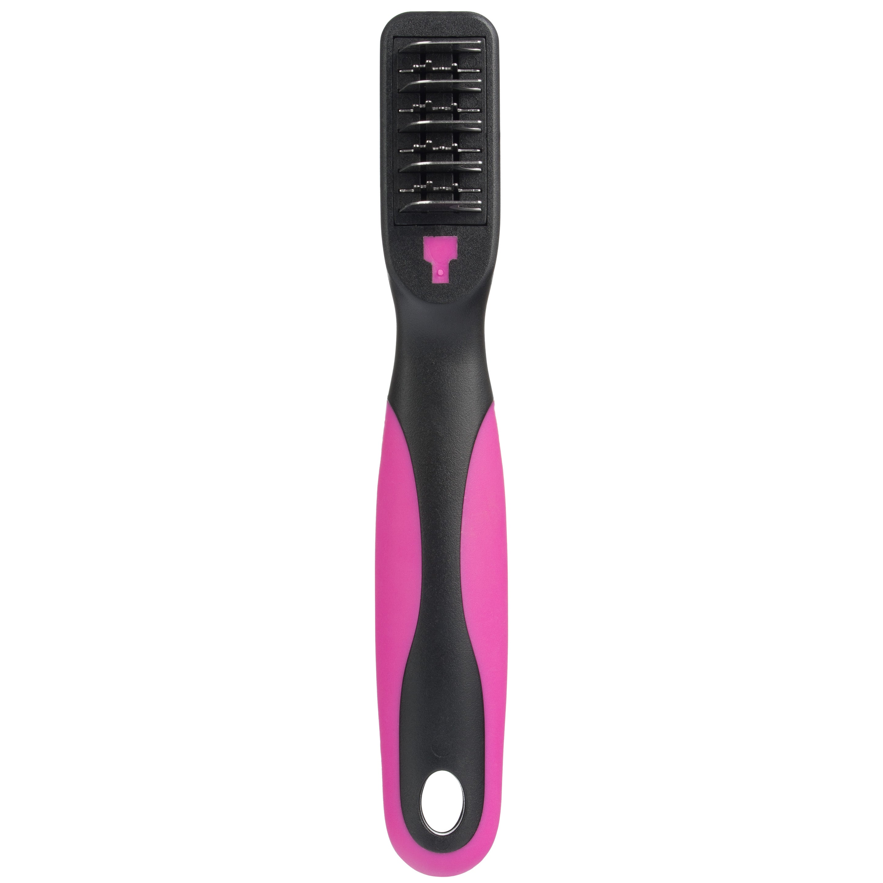 The Blovi 5 Blade Matt Breaker Dog Felt Brush is designed to tackle matted and tangled fur. It features five widely spaced, sharp metal hook blades that cut through mats, while four additional "twigs" located between the blades make it easy to remove loose hair. The ergonomically shaped handle with non-slip rubber inserts allows for a comfortable grip and confident work without the risk of slipping.