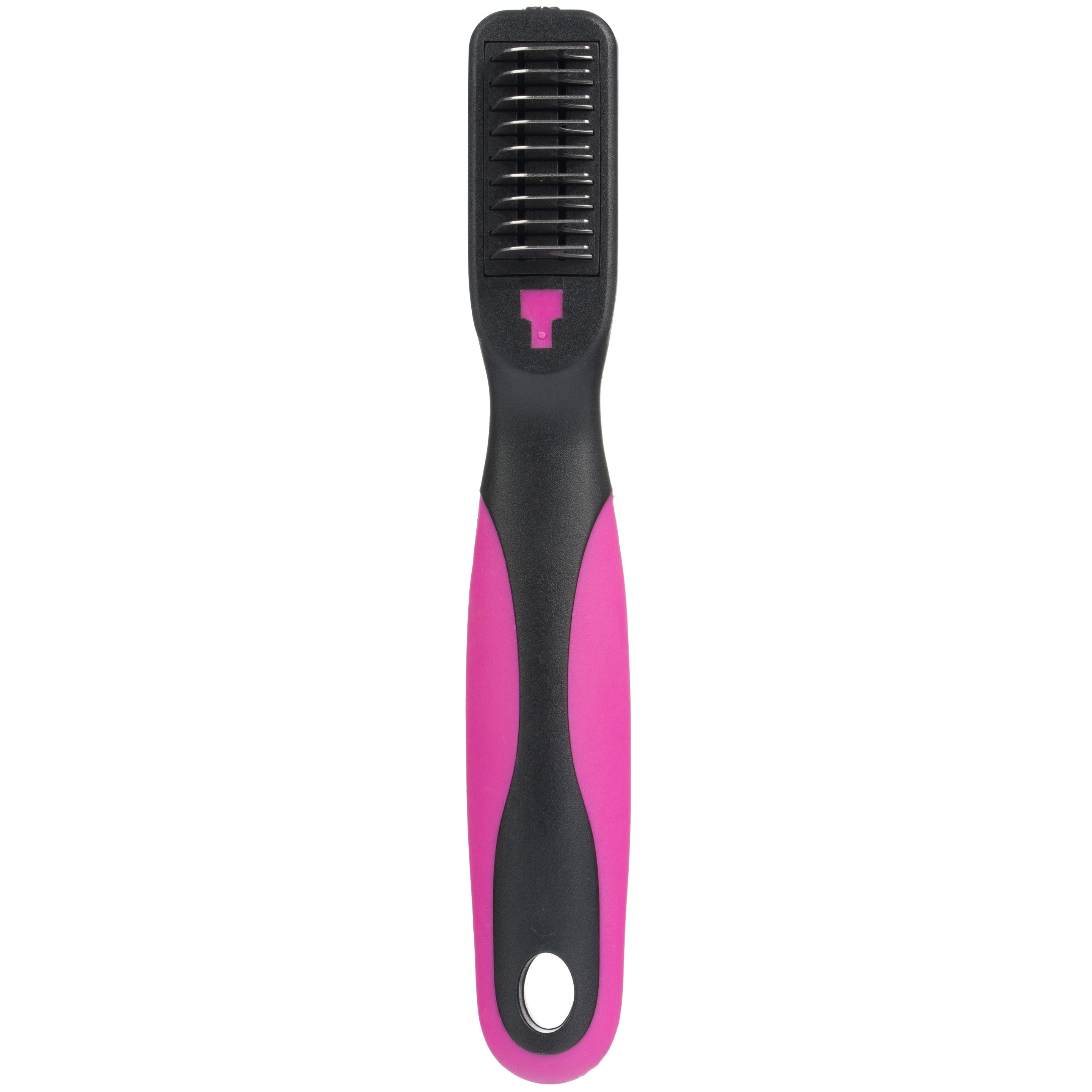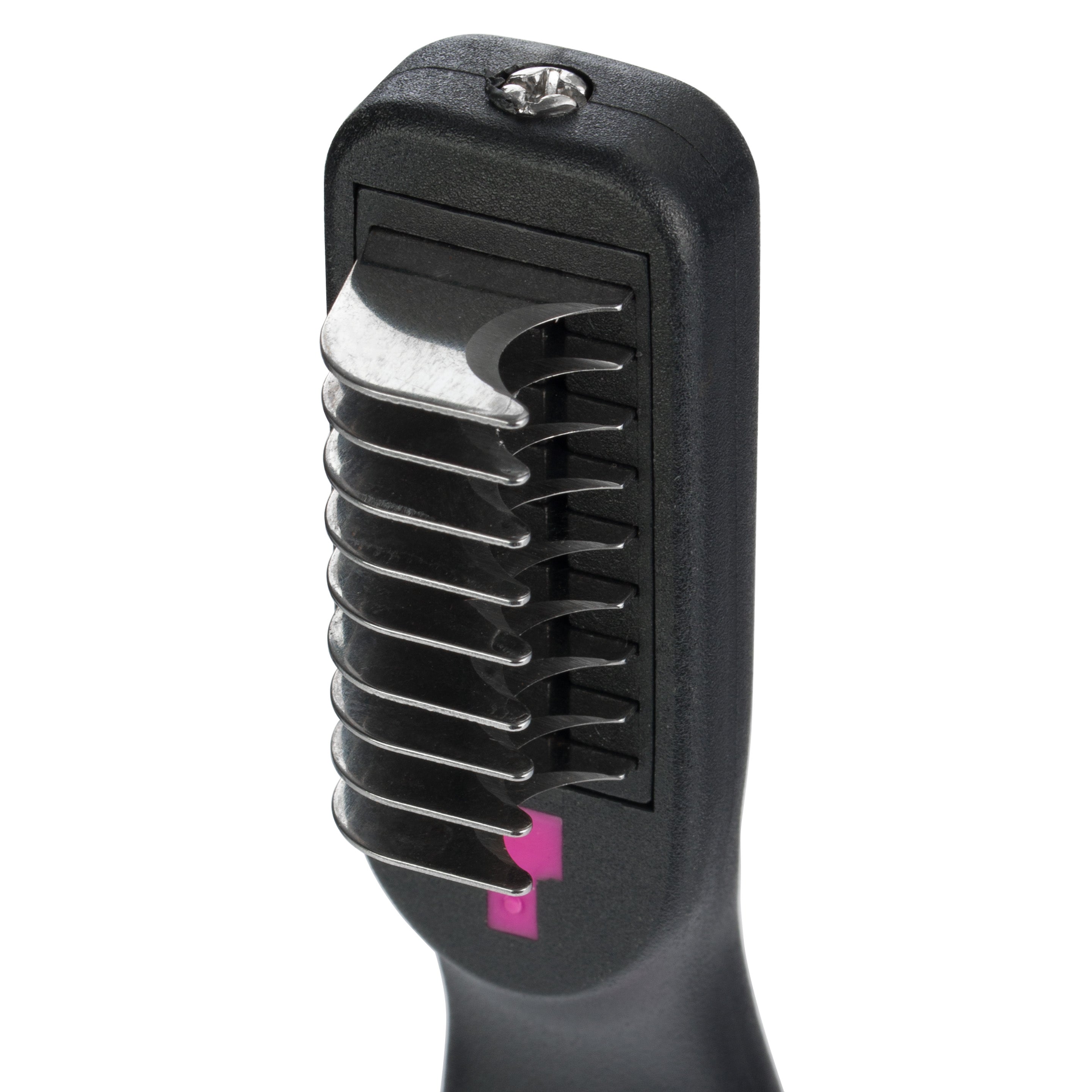 - 9 metal hook-shaped blades for combing and slicing through mats.