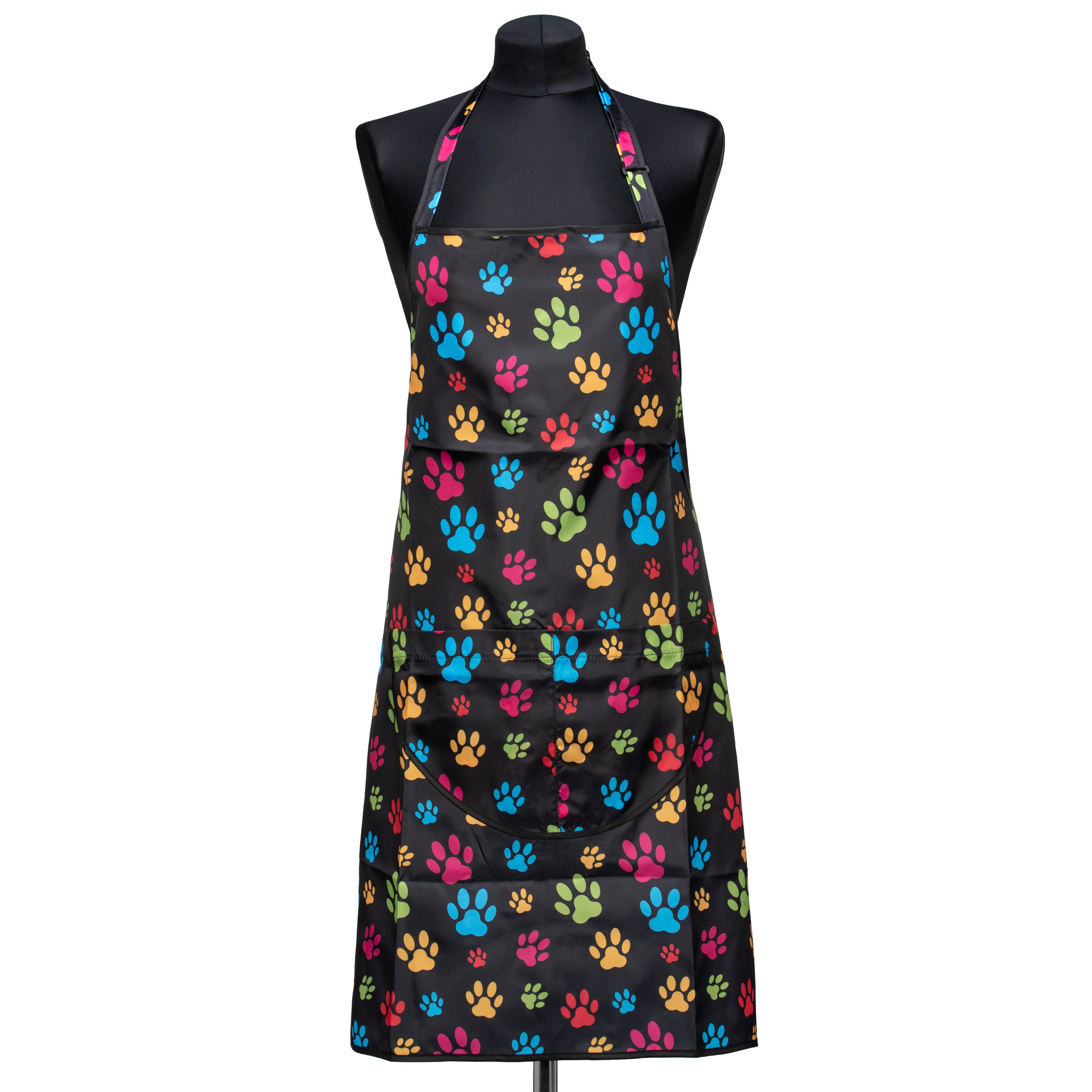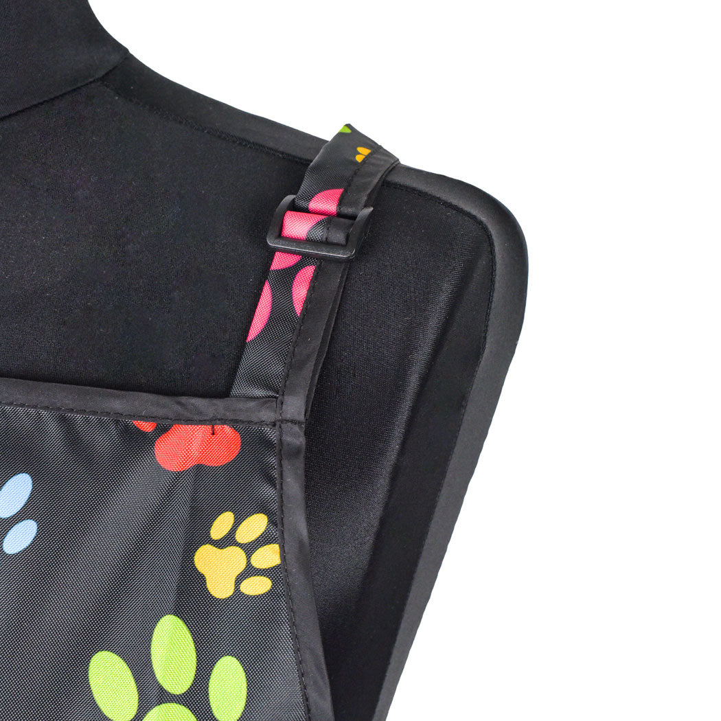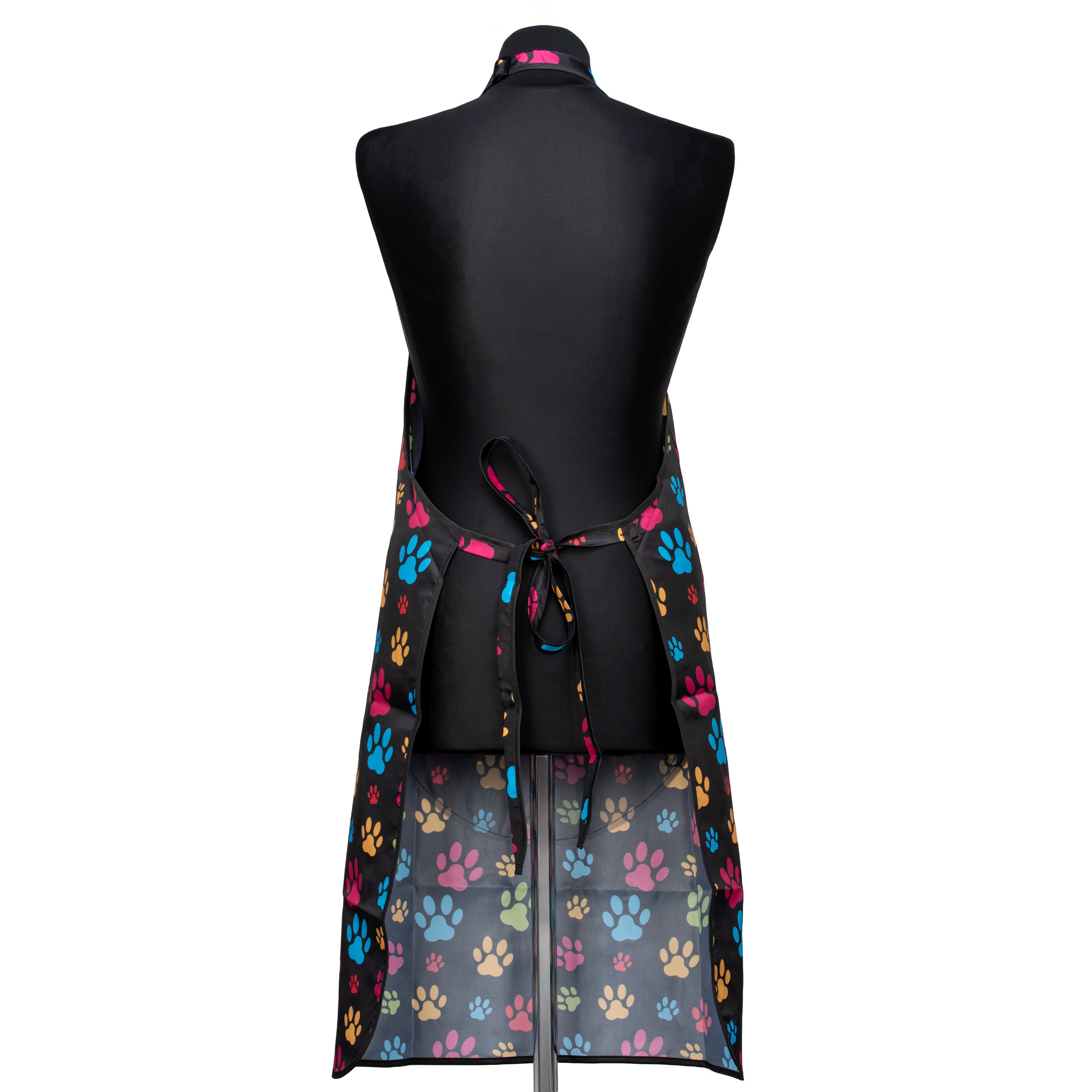 Blovi Black Grooming Apron – Colorful Paw Print, One Size, Lightweight and Water-Resistant