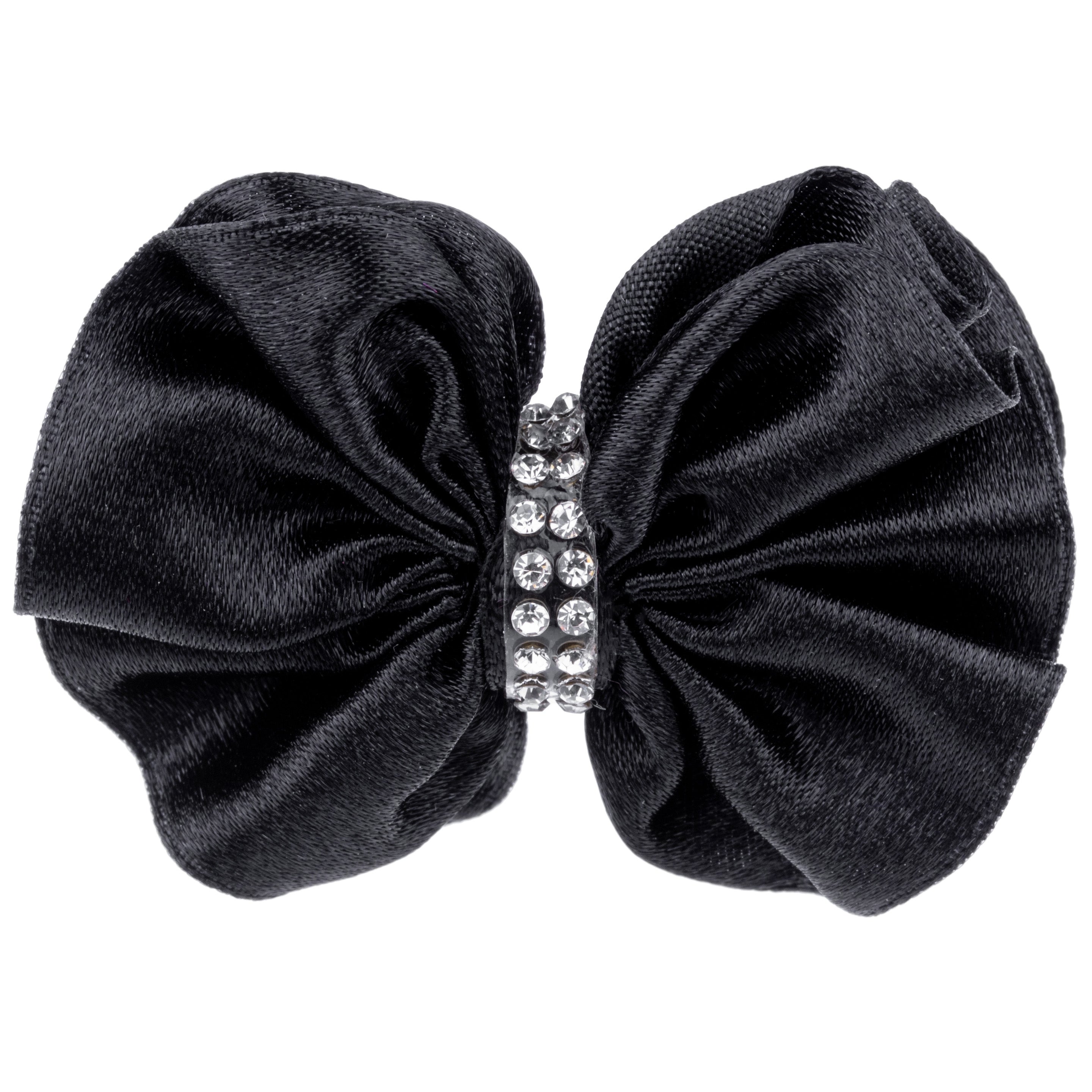Blovi Bow Premium Satin Grooming Bow – Black with Zircon Accents, Elegant Finish