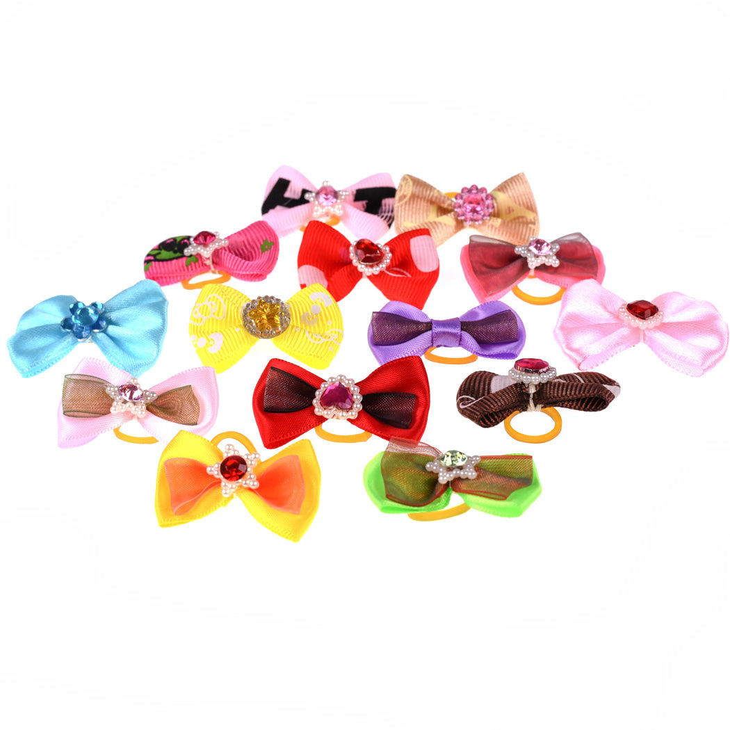 Blovi Happy Grooming Bows – Colorful Elastic Set with Mixed Patterns and Stones, 25 Pack