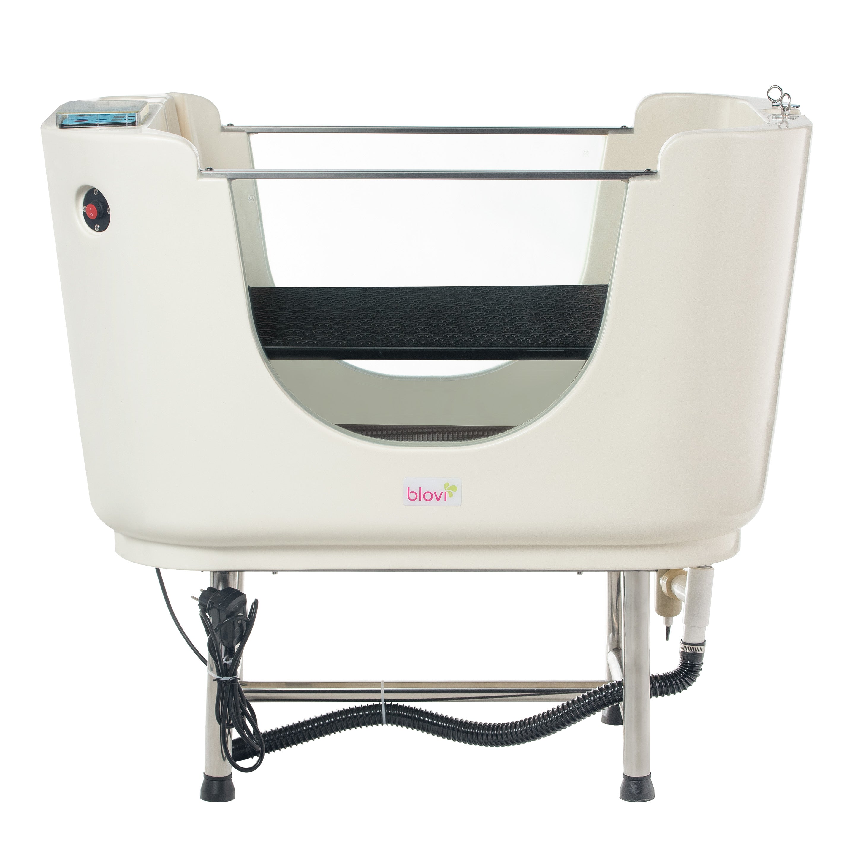 This professional spa tub with hydromassage and ozone therapy is designed for pet grooming salons to offer a luxurious and relaxing treatment for animals.