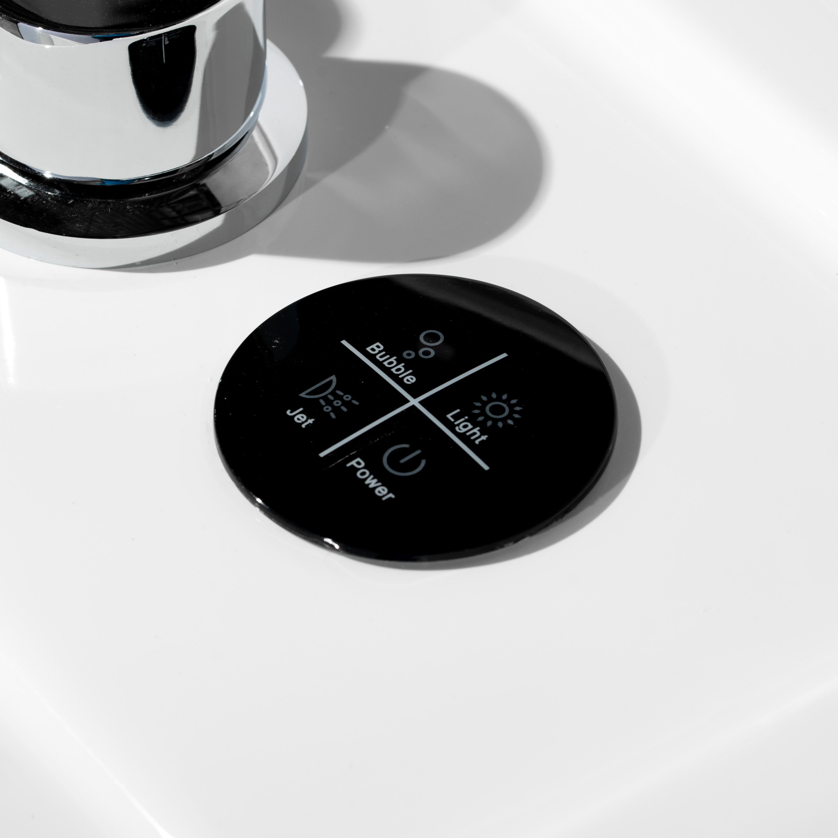 Tip: After filling the bathtub with water, turn the "Power" button on the control panel on and off. After a few seconds, the ozone generator will activate and ozonate the water for 60 seconds. During this time, you will see bubbles released and smell the characteristic ozone scent. The ozone generator will activate automatically every 10 minutes during your bath, for several seconds. After bathing, when you turn off the tub, the ozonator will turn on again for 60 seconds to disinfect.