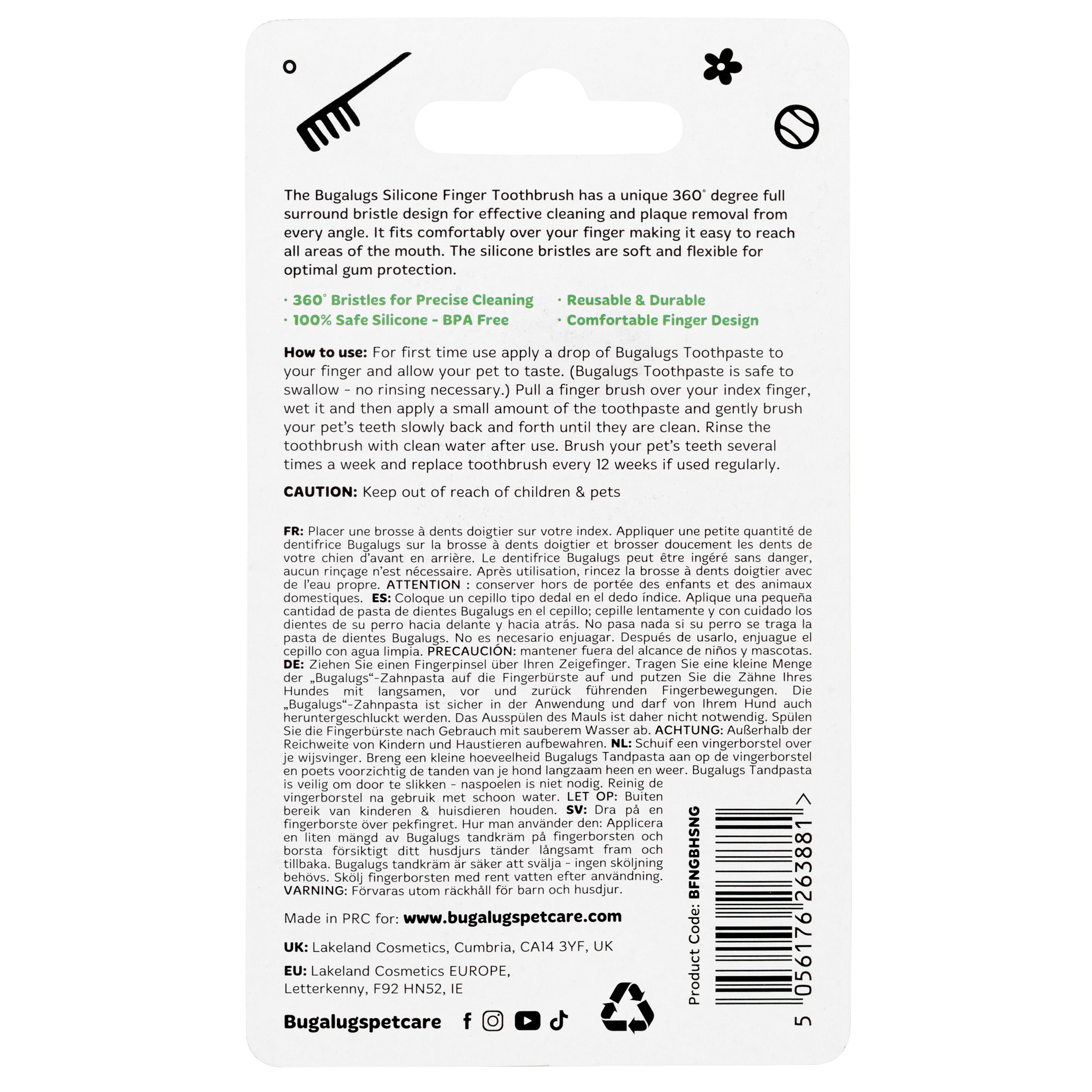 Bugalugs Finger Dental Brush – Silicone Toothbrush, Flexible Design, Easy Oral Care
