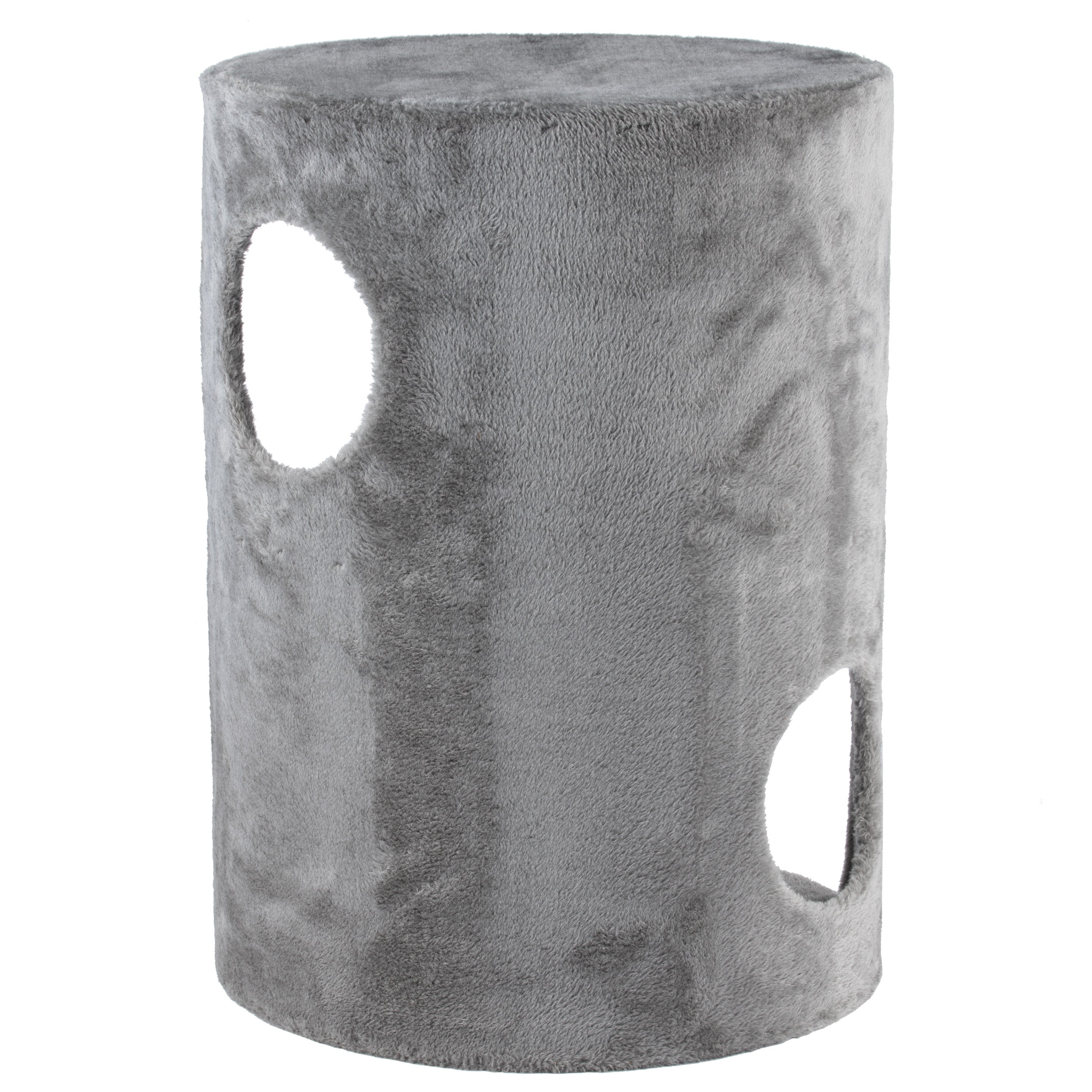 The Cat&Rina Elegance Tower Grey is a round mini cat tower with three levels and a scratching post in an elegant gray color. This tiered cat toy with a rigid, sturdy structure and plush upholstery is a stylish piece of furniture that provides your cat with entertainment and a healthy outlet for its scratching instincts. Three levels and two shelves provide opportunities for jumping, climbing, and lounging, while the round holes in the walls offer opportunities for surprise attacks and excellent vantage points.