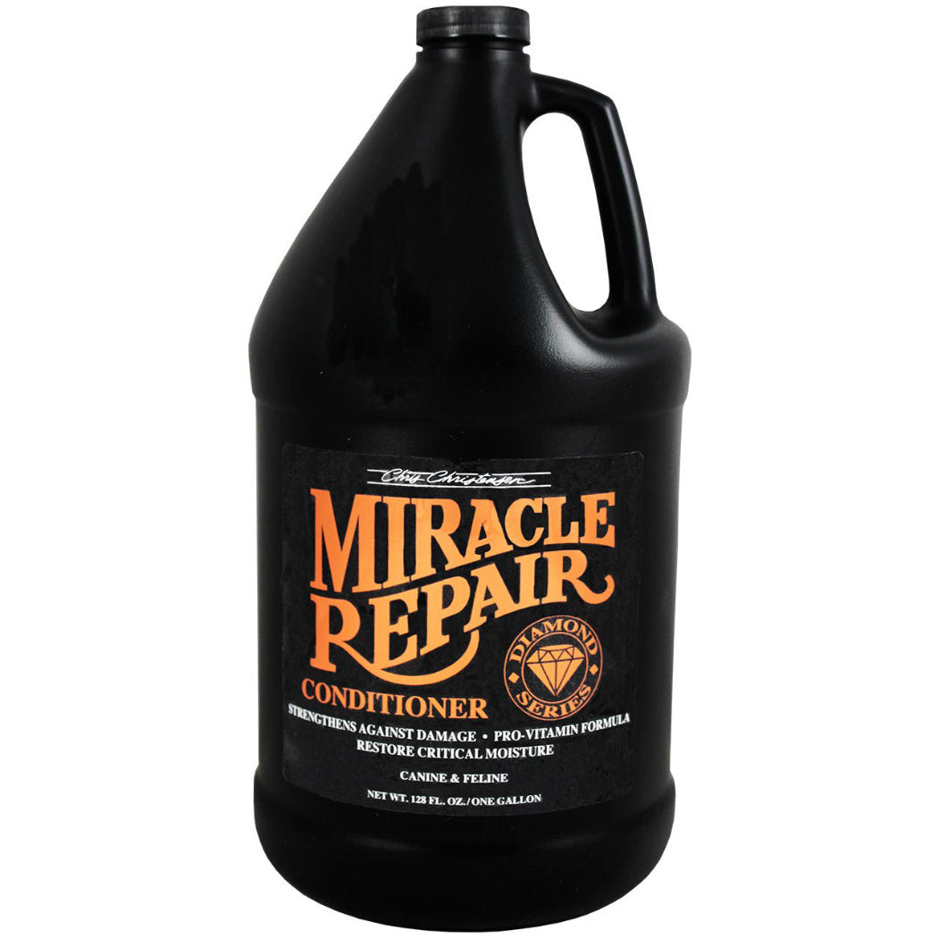 Chris Christensen Miracle Repair Conditioner deeply penetrates the skin and coat, nourishing and rebuilding it from within, protecting against damage, and moisturizing. The conditioner's formula replenishes hair structure, making it strong, flexible, and smooth, less prone to breakage and splitting. Nutrients accelerate skin cell renewal, while antioxidants inhibit the formation of free radicals and slow down the aging and degenerative processes. After use, the coat is visibly restored, strong, healthy, and shiny, regaining optimal moisture levels. The coat is easy to comb and style, and is frizz- and static-free.