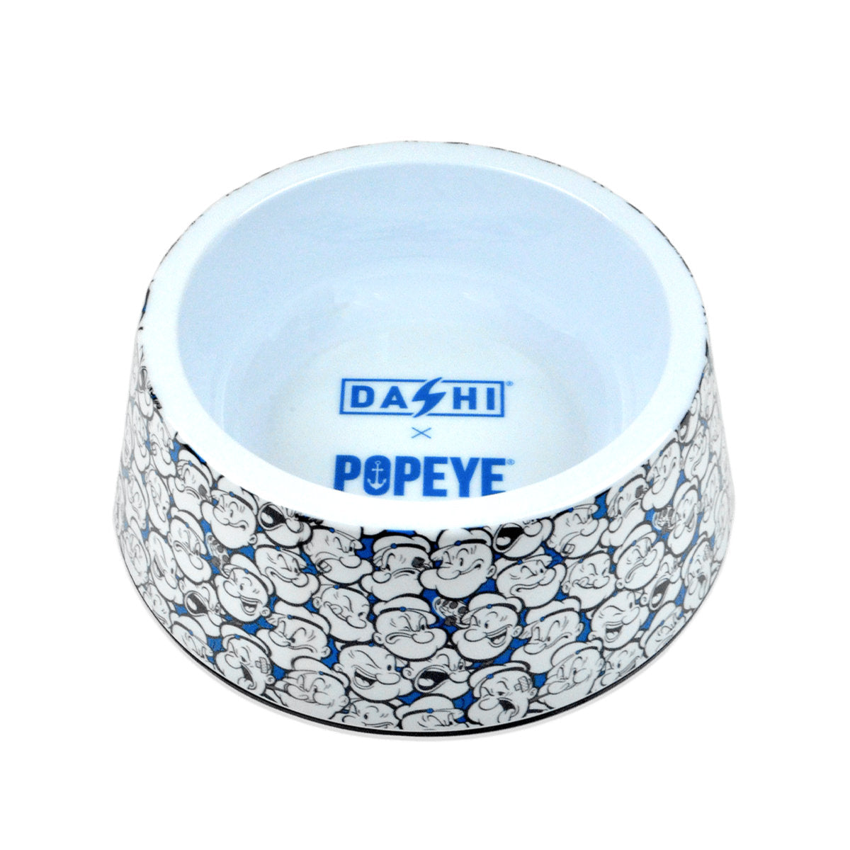 The Dashi Blue Popeye Bowl for dogs and cats is a durable and stylish feeding solution made of melamine, featuring a non-slip base and modern design.