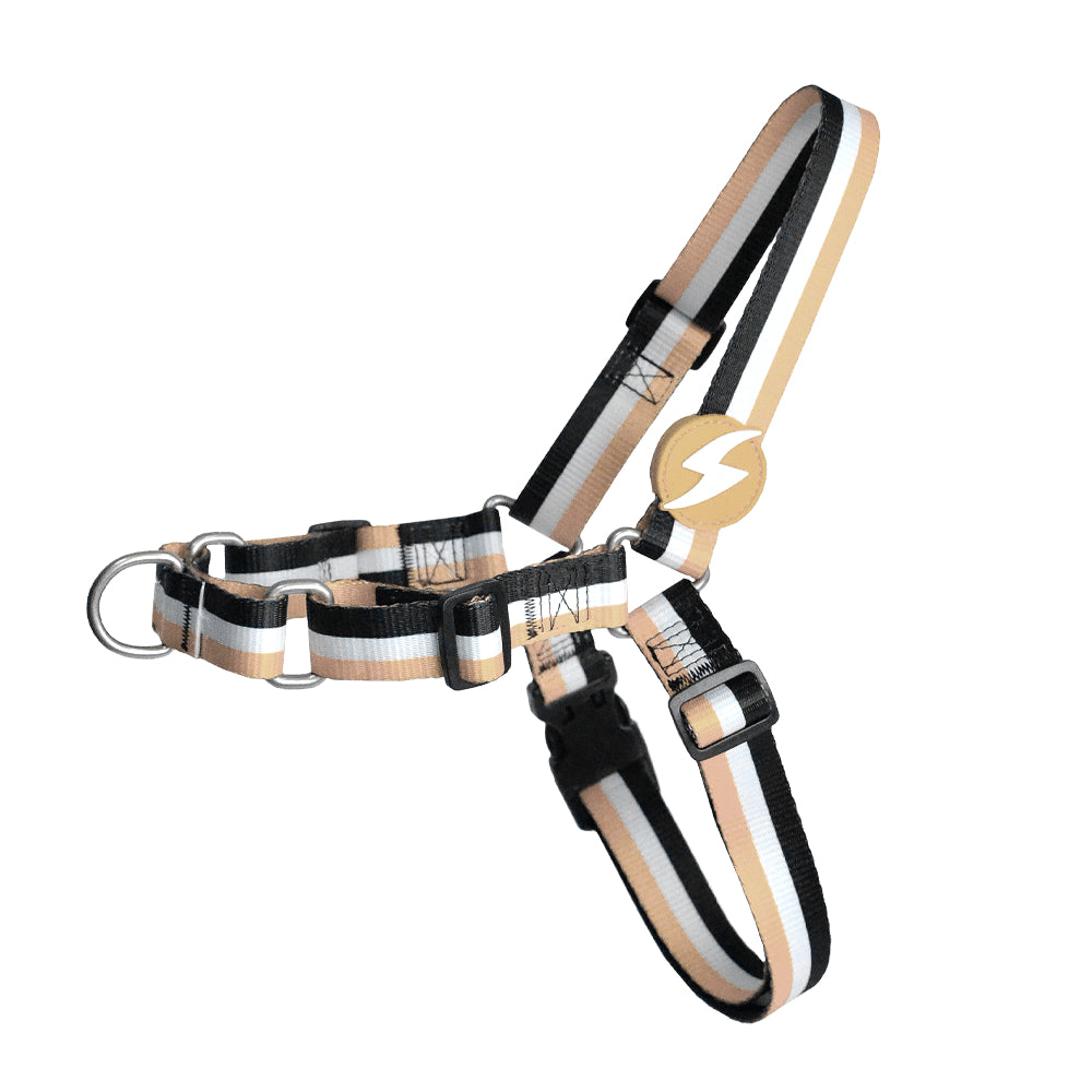 The Dashi Stripes Brown & Black Front Harness ensures a fashionable look and safety for your pet with its durable design and "no-pull" construction.