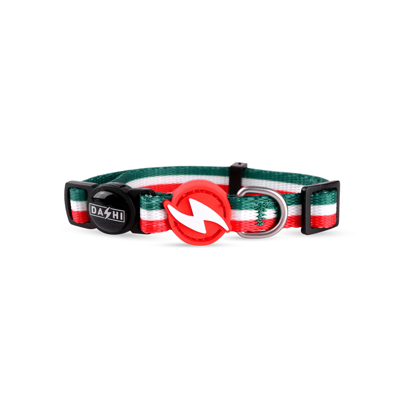 Dashi Stripes Green & Red Cat Collar – Adjustable Nylon Collar with Secure Buckle, Stylish Design