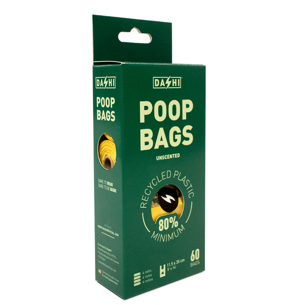 Dashi Unscented Biodegradable Poop Bags – Extra-Strong Waste Bags, 4 Rolls of 15, 11.5x35cm