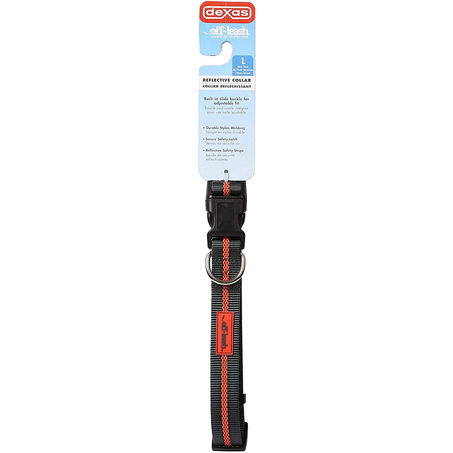 The Dexas Off-Leash Collar is a durable and practical dog collar, perfect for daily walks and longer adventures, featuring easy maintenance and high visibility.