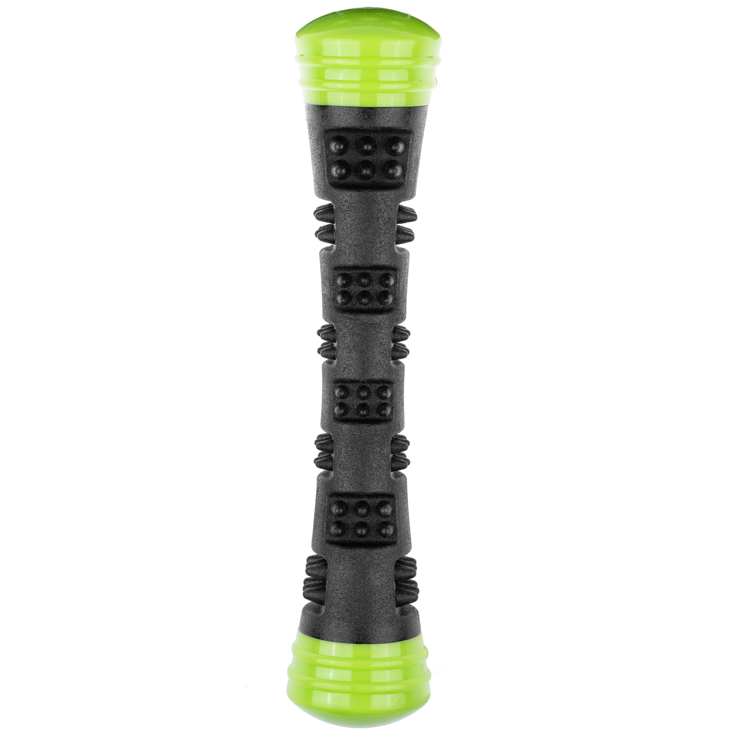 Dog Comets Meteor Green Rubber Fetch Stick – Large Size with Protrusions and Dual Squeakers