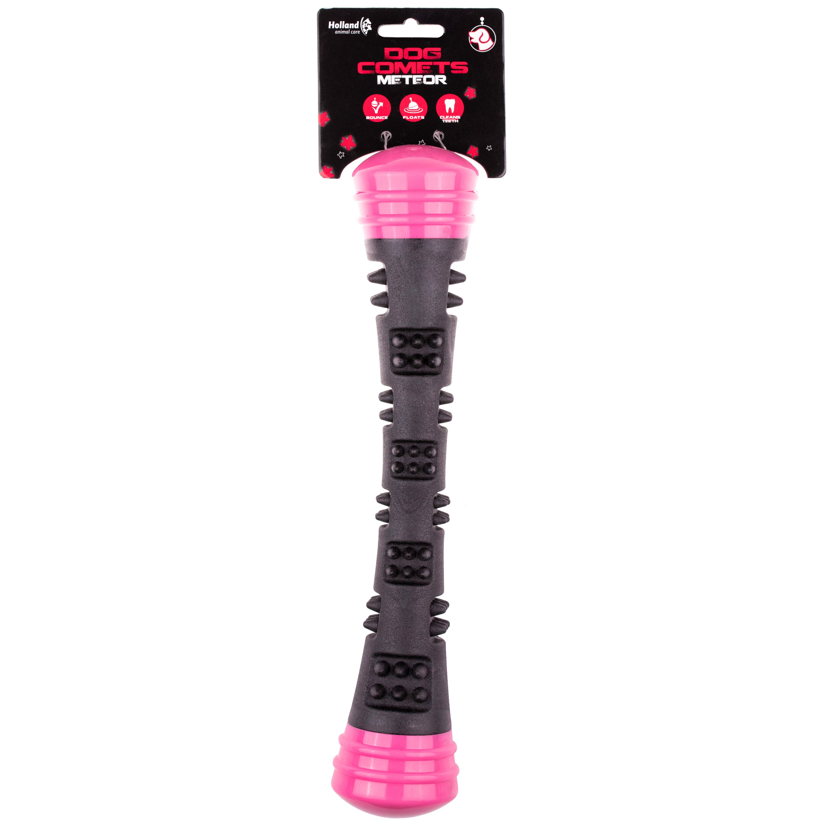 Dog Comets Meteor Pink Rubber Fetch Stick – Large Durable Toy with Protrusions and Dual Squeakers