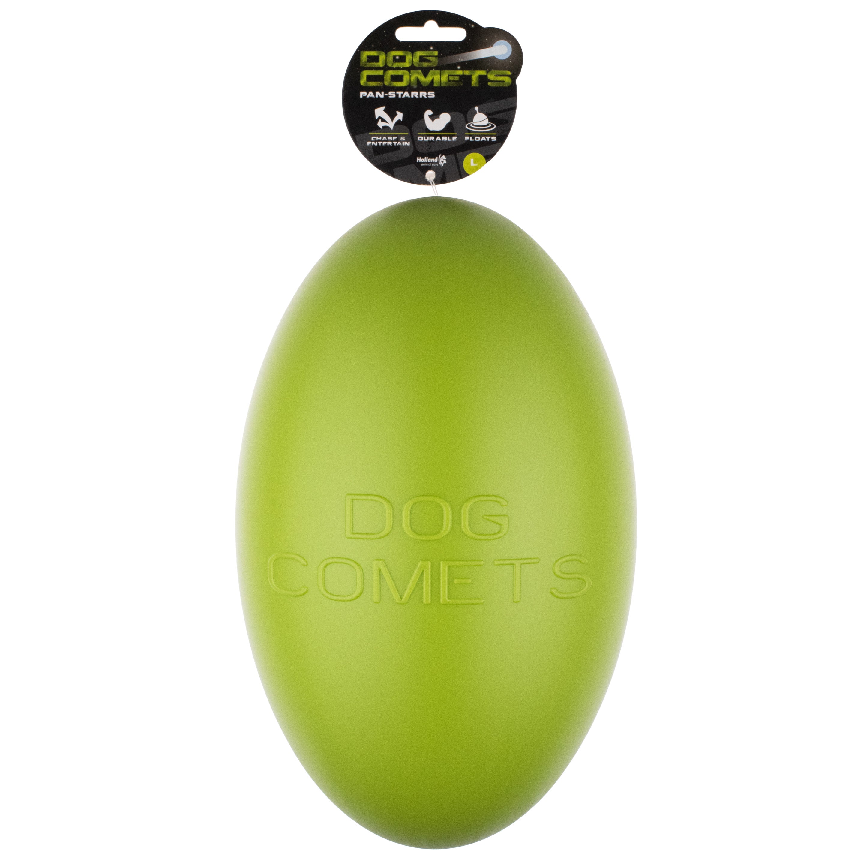 This oversized toy allows your pet to run wild and gives you a break from constantly throwing the ball. The hard material won't give in to teeth, claws, or the weight of your pet, and it is easy to keep clean. Your dog will love bouncing, rolling, and playing with this intentionally "oversized" egg-shaped ball. It's one of the most frequently copied toys, but no knockoff can compare to the original!