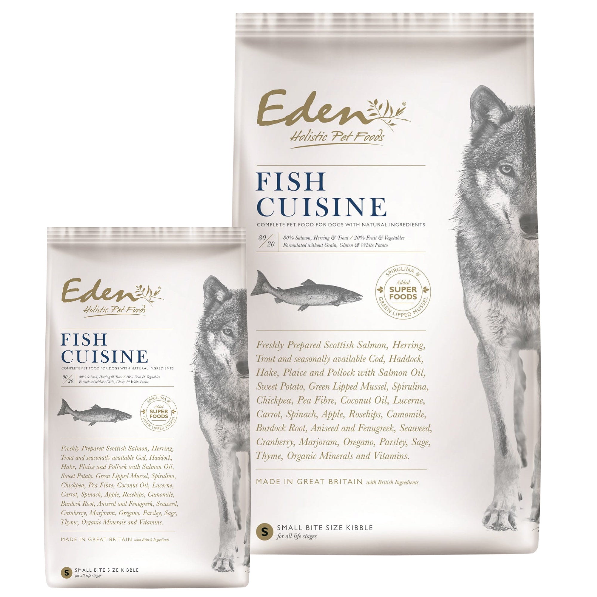 - Made with top-quality ingredients: Scottish salmon, herring, trout, green peas, sweet potatoes, chickpeas, cranberries, coconut oil, spirulina, and mussels.
