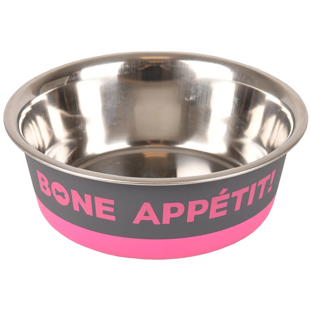Flamingo Bone Apetit Pink Steel Bowl – Medium Non-Slip Feeding Dish with Durable Base
