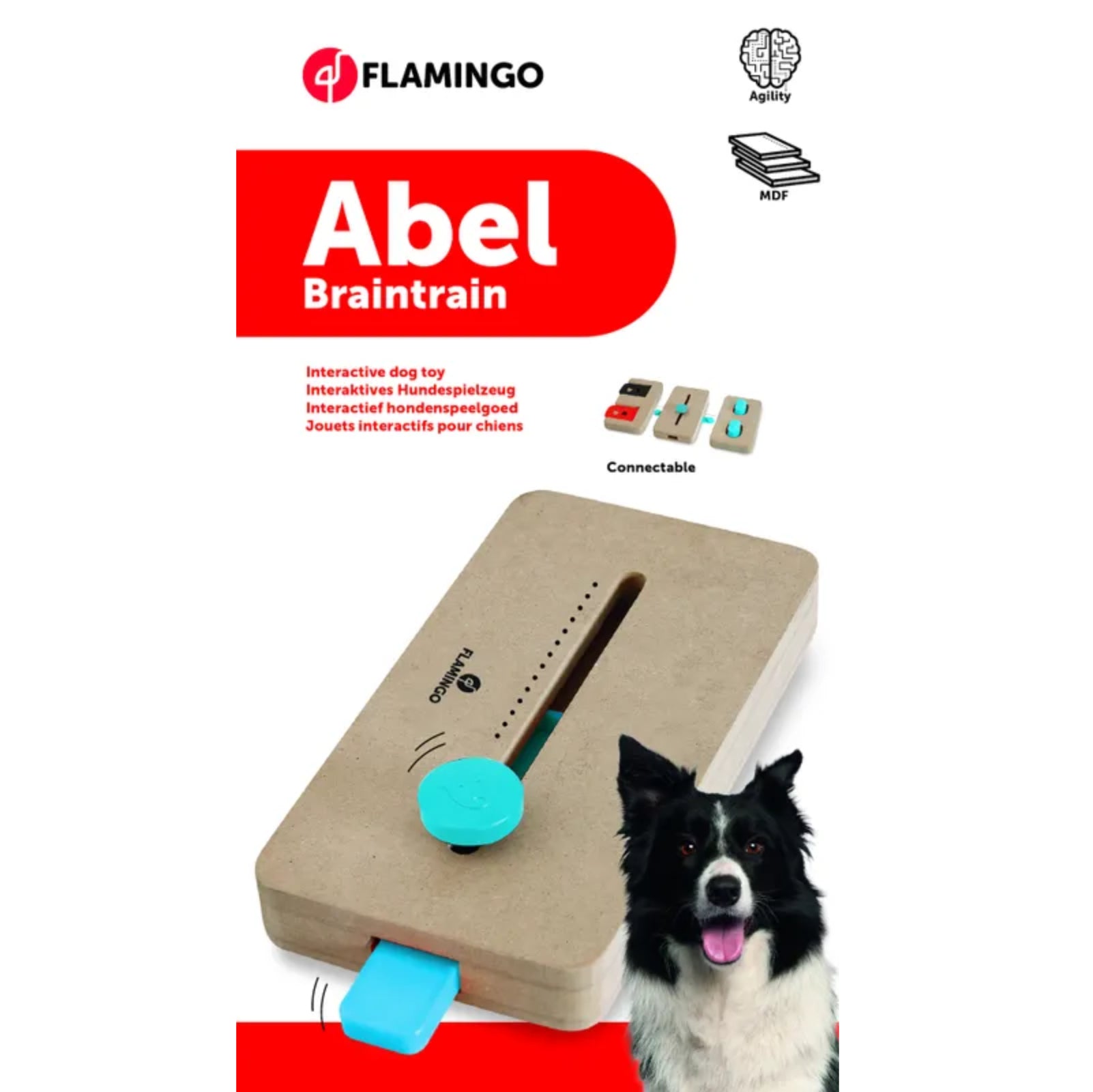 The Flamingo Braintrain Abel is a mini intelligence toy for dogs. Dogs love challenges and find immense satisfaction in following their owners' commands, both during training and play. However, many dogs lack mental and physical stimulation, leading to boredom and sometimes even destructive behavior. The interactive Flamingo Braintrain Abel toy nurtures your pet's development, stimulates their creativity, and motivates them to be mentally active. Playing together and interacting with their owners helps build a bond and a good relationship. The Flamingo Abel is a toy your dog will love.