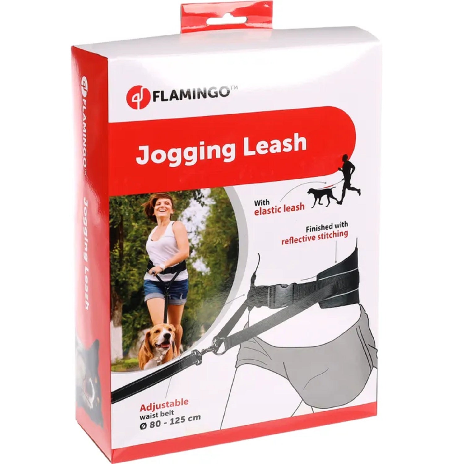 - Reflective elements on the waistband and the entire length of the leash.