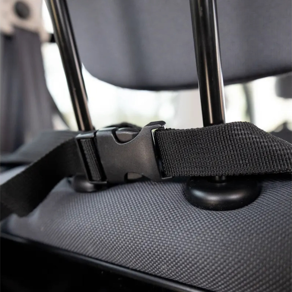 If necessary, you can hang the cover only from the rear headrests, place the front loosely on the seat, and sit with your dog. Thanks to the zipper dividing the cover, you can leave half of it hanging from the front headrest and the other half loosely on the seat. The Dex Black cover is made of a dirt- and moisture-resistant material. The middle section is covered with a non-slip, pleasant-to-touch material, further enhancing comfort. Special Velcro-fastened eyelets allow for the attachment of seat belts. Easy to clean, simply wipe with a damp cloth.