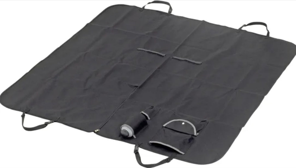 The Flamingo Dex Black is a practical car cover that protects your car's back seat from dirt, sand, mud, and dog hair, making it ideal for traveling with your dog.