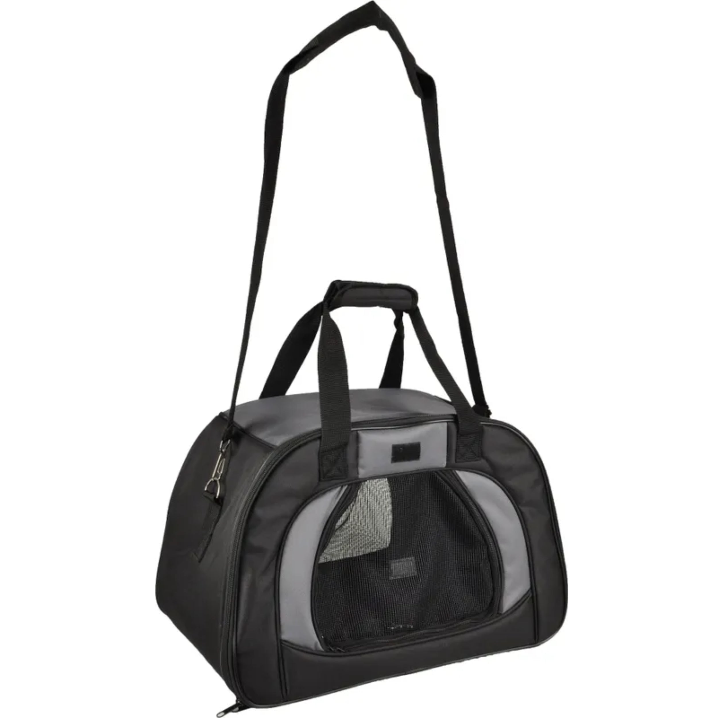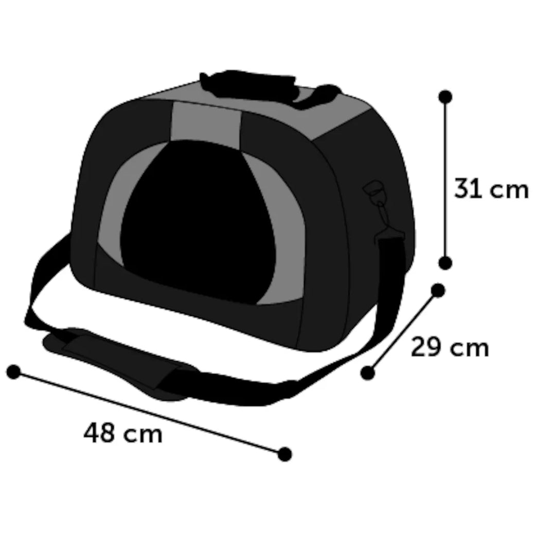 The Flamingo Carrying Bag Doris is perfect for long journeys or trips to the vet, providing maximum comfort and safety. Made from high-quality polyester, this carrier is splash-proof and easy to clean. It is filled with foam for adequate rigidity and comes in black and gray. The bag features two windows with strong vinyl mesh for good ventilation, allowing your pet to see their surroundings.