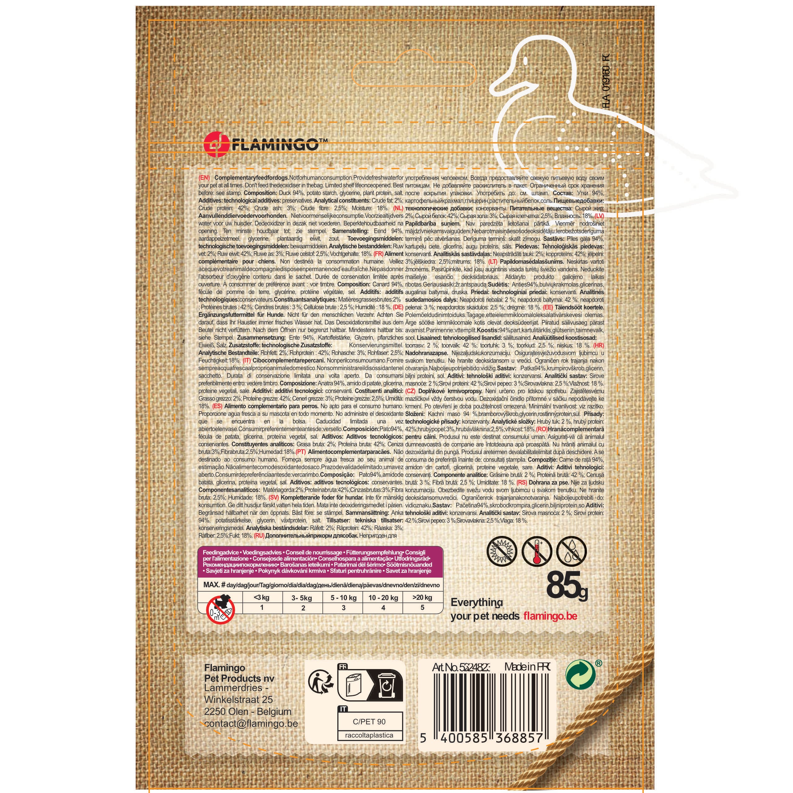 Flamingo Hapki Roll with Duck are delicious and aromatic dog treats made with natural ingredients, perfect for adult dogs and puppies over 3 months of age.