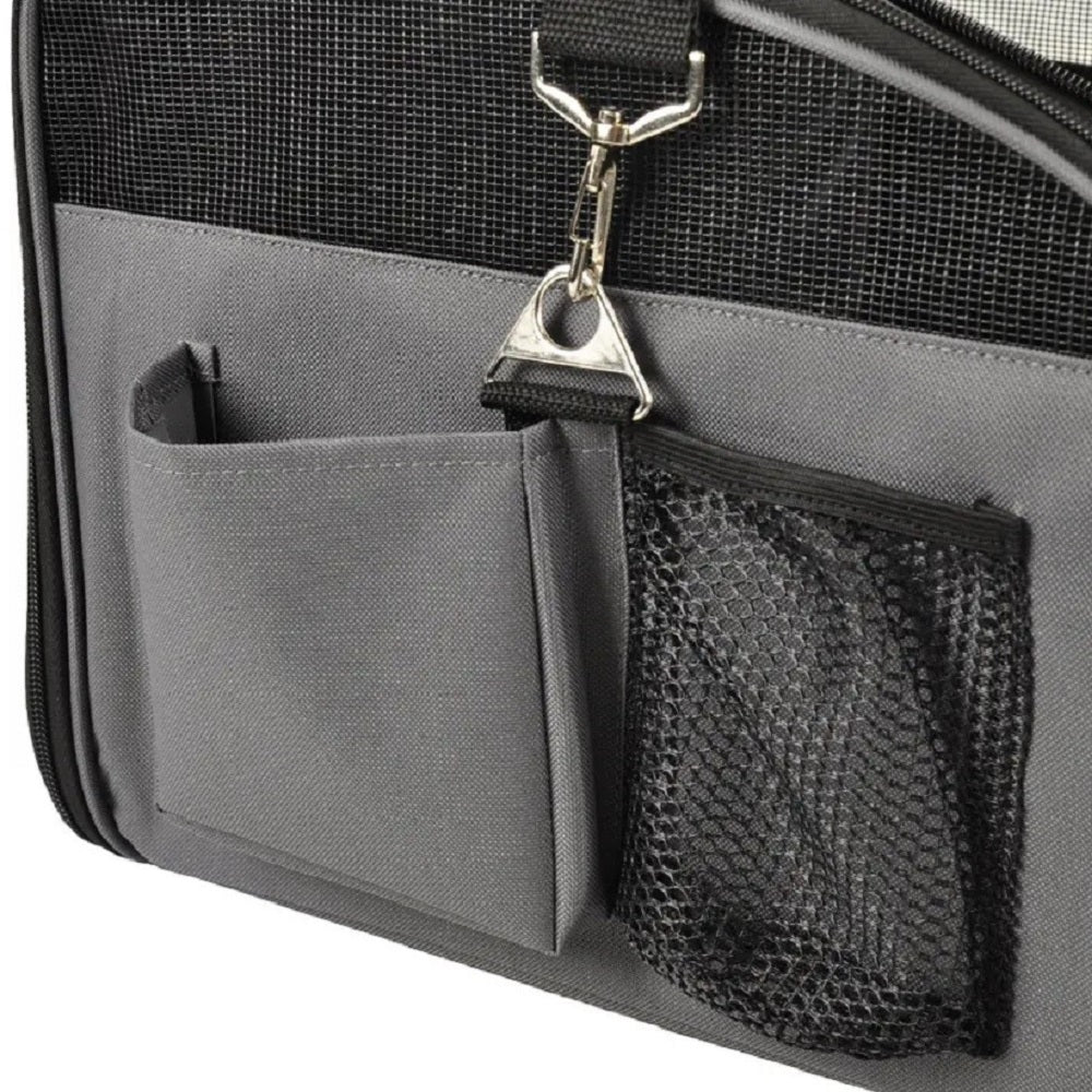 - For car travel, you can roll up the top mesh and attach it to the back of the seat (with Velcro and tape), allowing your pet to see outside.
