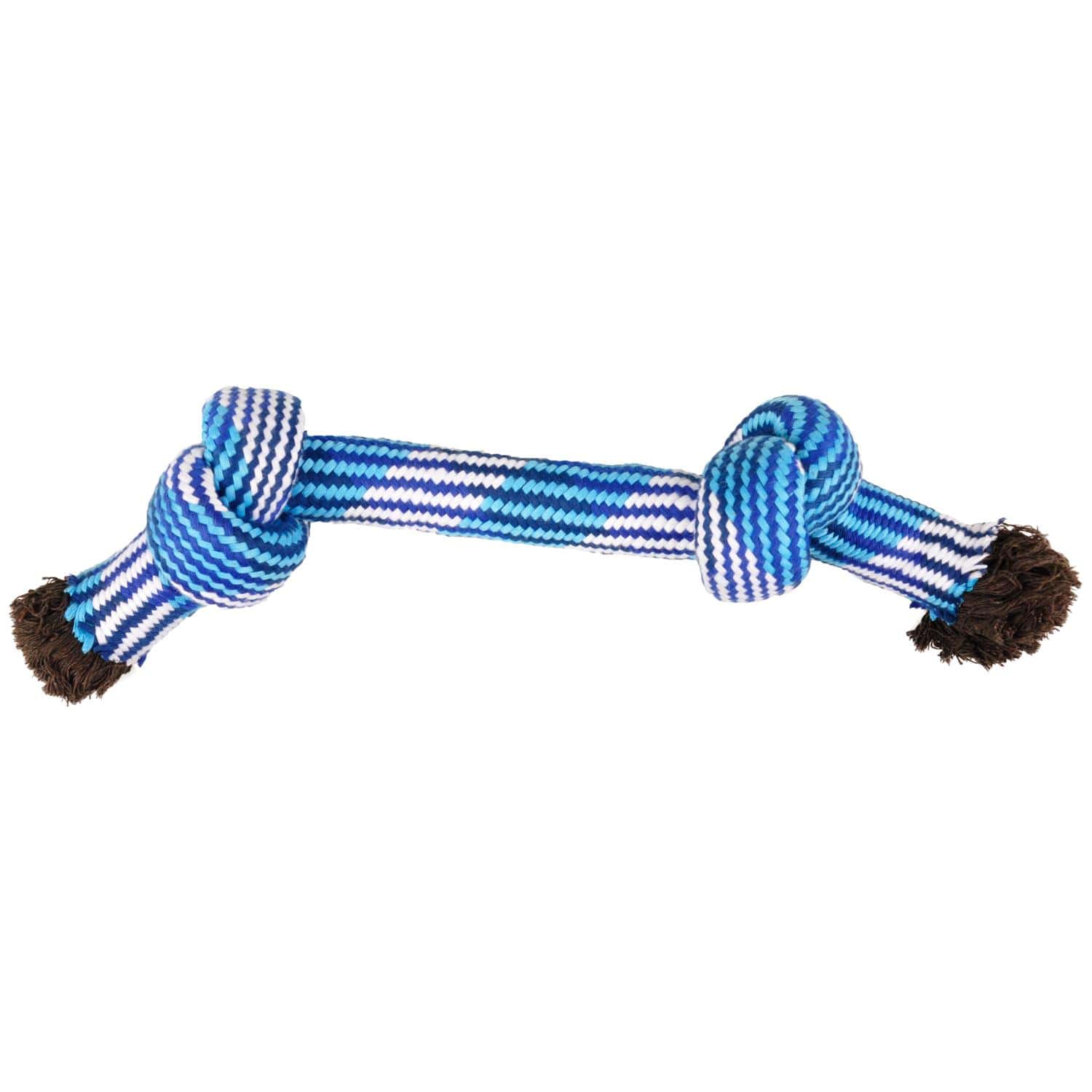 Flamingo Joe Rope 2 Knots is a simple, classic, and durable dog toy. It features a braided rope-like chew toy with sturdy knots at the end. The combination of white, blue, and navy blue makes it look very attractive and brings to mind carefree play on warm summer days.