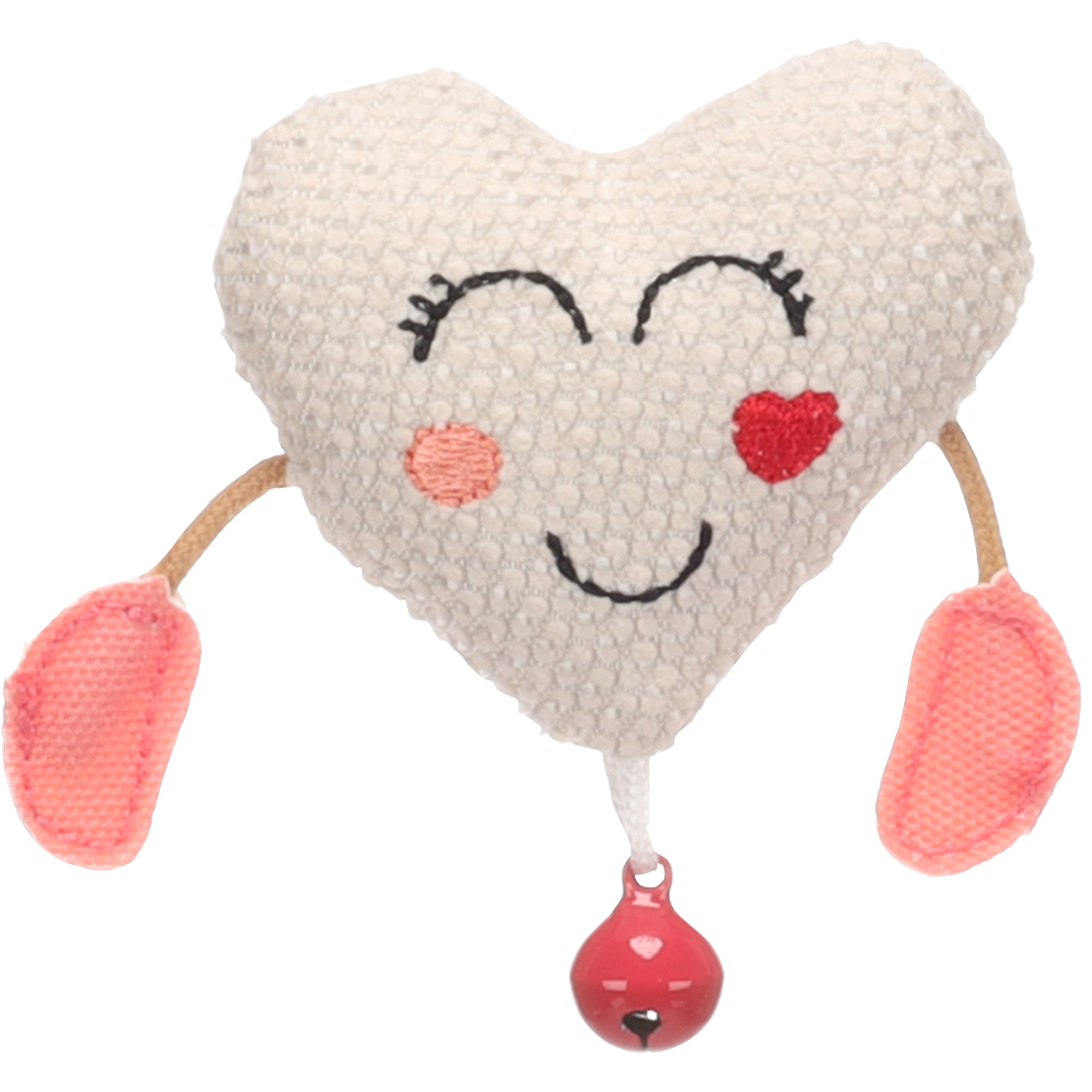 The Flamingo Cat Love Heart is an adorable heart for cats with a bell and a touch of catnip. Made of soft, textured fabric, it features an embroidered face and feet on strings, and a bow. The body, made of beige, textured fabric and complemented by harmonious colors, looks incredibly stylish! Protruding elements encourage your cat to nibble, and by throwing the toy, you provide your cat with healthy activity and help satisfy its instincts of chasing, hunting, and catching. The soft body is gentle on cats' teeth, while the protruding paws and bell make the toy easy to grasp. Inside the heart is hidden catnip, a favorite of most cats. The added catnip accelerates familiarization with the toy and provides your cat with satisfaction.