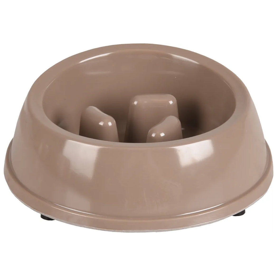 If your pet eats their meal at lightning speed and often struggles with indigestion, gas, a bloated, and sore stomach afterward, it's possible that this is caused by eating too quickly. In this situation, it's worth trying a Flamingo slow-eating bowl. The bowl is designed to significantly extend mealtime and prevent problems resulting from greedily swallowing bites instead of slowly chewing. It's also recommended for overweight dogs, as it helps them feel full after serving a smaller portion. This can help them lose extra weight. The bowl is also suitable for puppies, helping them learn proper behavior. Another advantage of this type of product is its calming and soothing effect. Your dog will be focused on reaching for the treat and licking it for longer. The bowl is made of melamine, which doesn't absorb odors, is heat-resistant, and is completely safe. The vessel has an interesting beige color and is available in 4 sizes.
