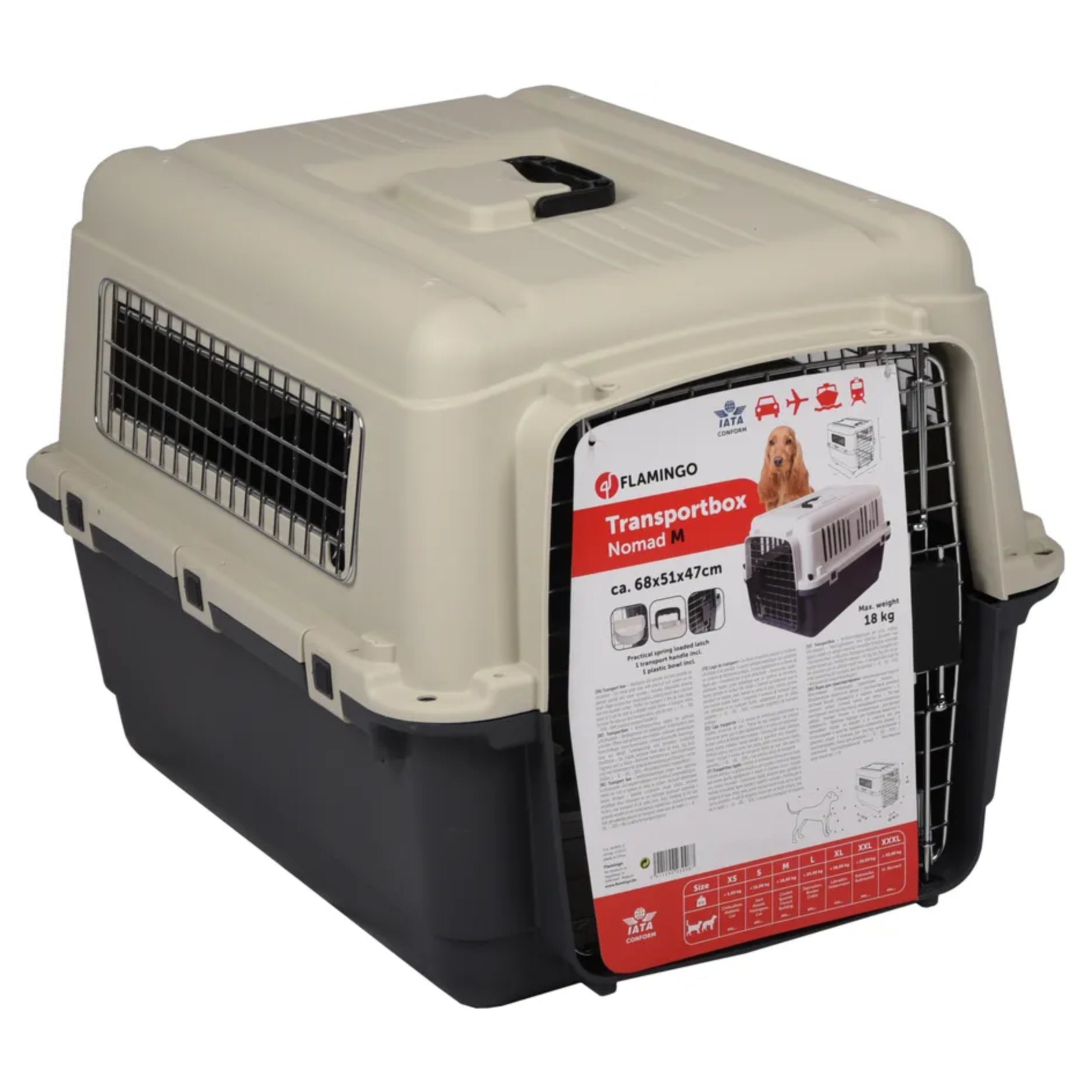 Flamingo Nomad IATA Transport Box M – Secure Plastic Carrier, Ventilated, Up to 18kg