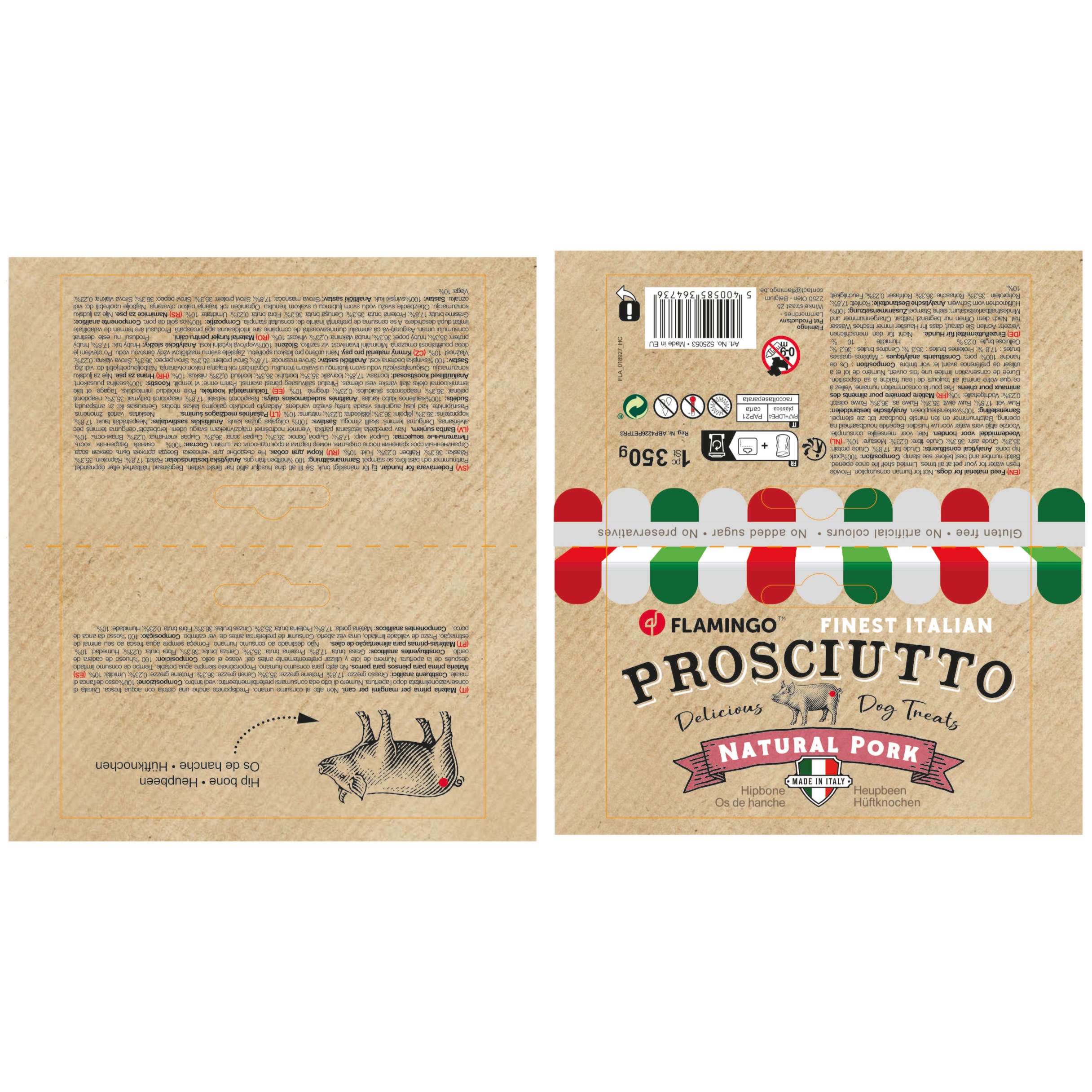 Flamingo Pork Hip Bone with Meat is a natural chew that satisfies dogs' natural need to chew and gnaw, supporting oral health and providing entertainment.