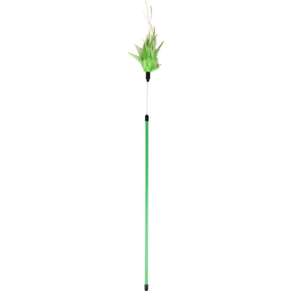 The Flamingo Cat Stick Rumba is a simple, feather-tipped toy beloved by cats. Wands and stick toys provide healthy activity for cats and satisfy their instincts to chase, hunt, and catch. The shaking and rustling feathers on the flexible tip create an irresistible challenge for your pet as soon as you move the handle. This unpredictable movement of the toy is incredibly intriguing and arouses your cat's curiosity.