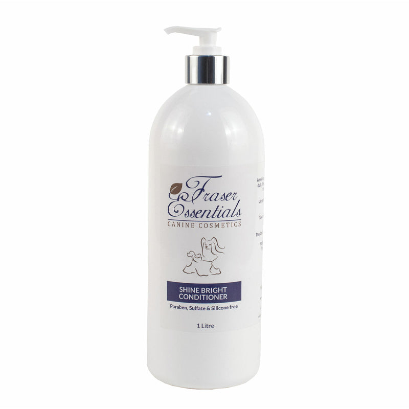 Fraser Essentials Shine Bright Conditioner is a mild conditioner formulated to revitalize dull coats, suitable for all breeds whose coat requires shine.