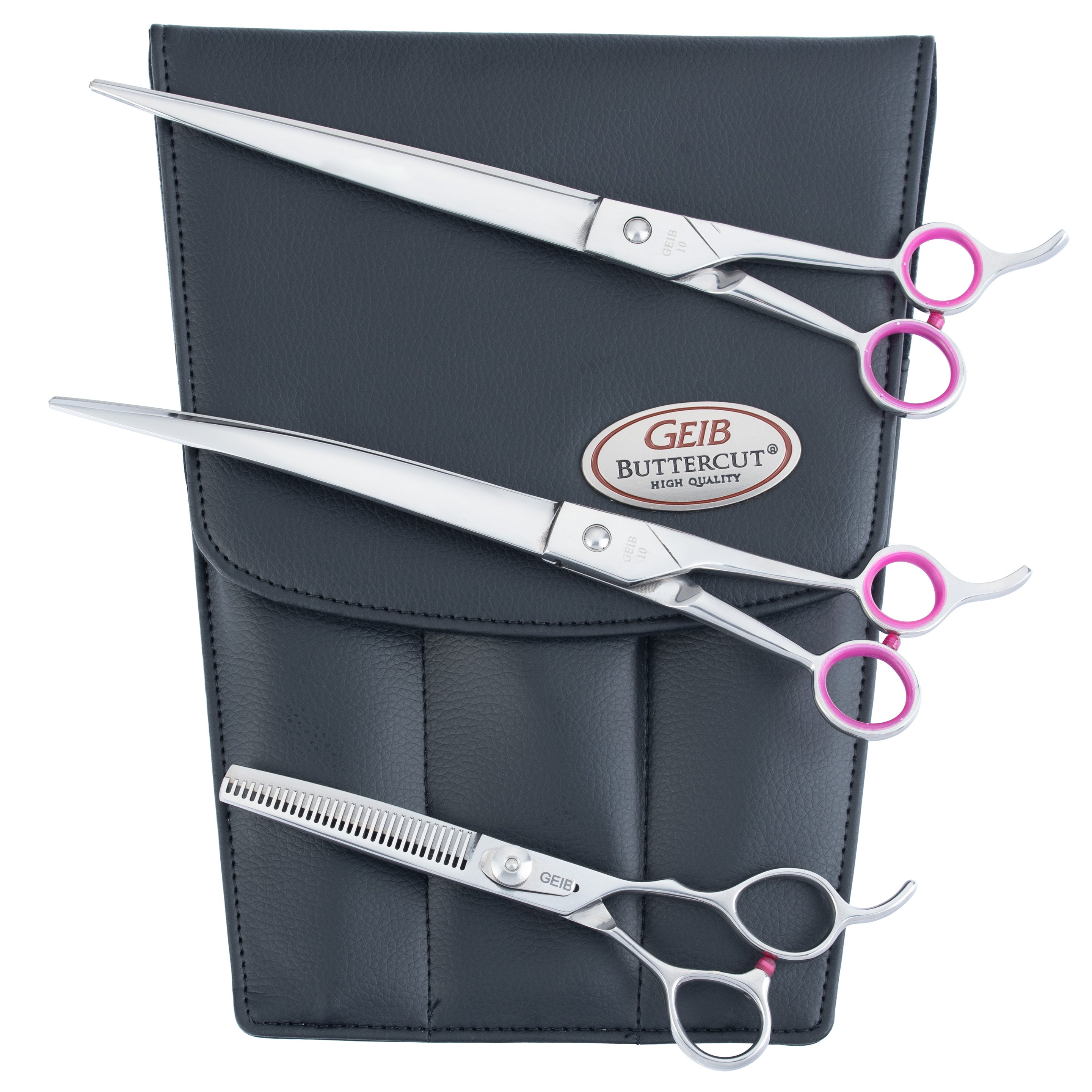 The Geib Gator 10" set is designed for both beginners and advanced groomers. It comes in an elegant case with the manufacturer's logo.