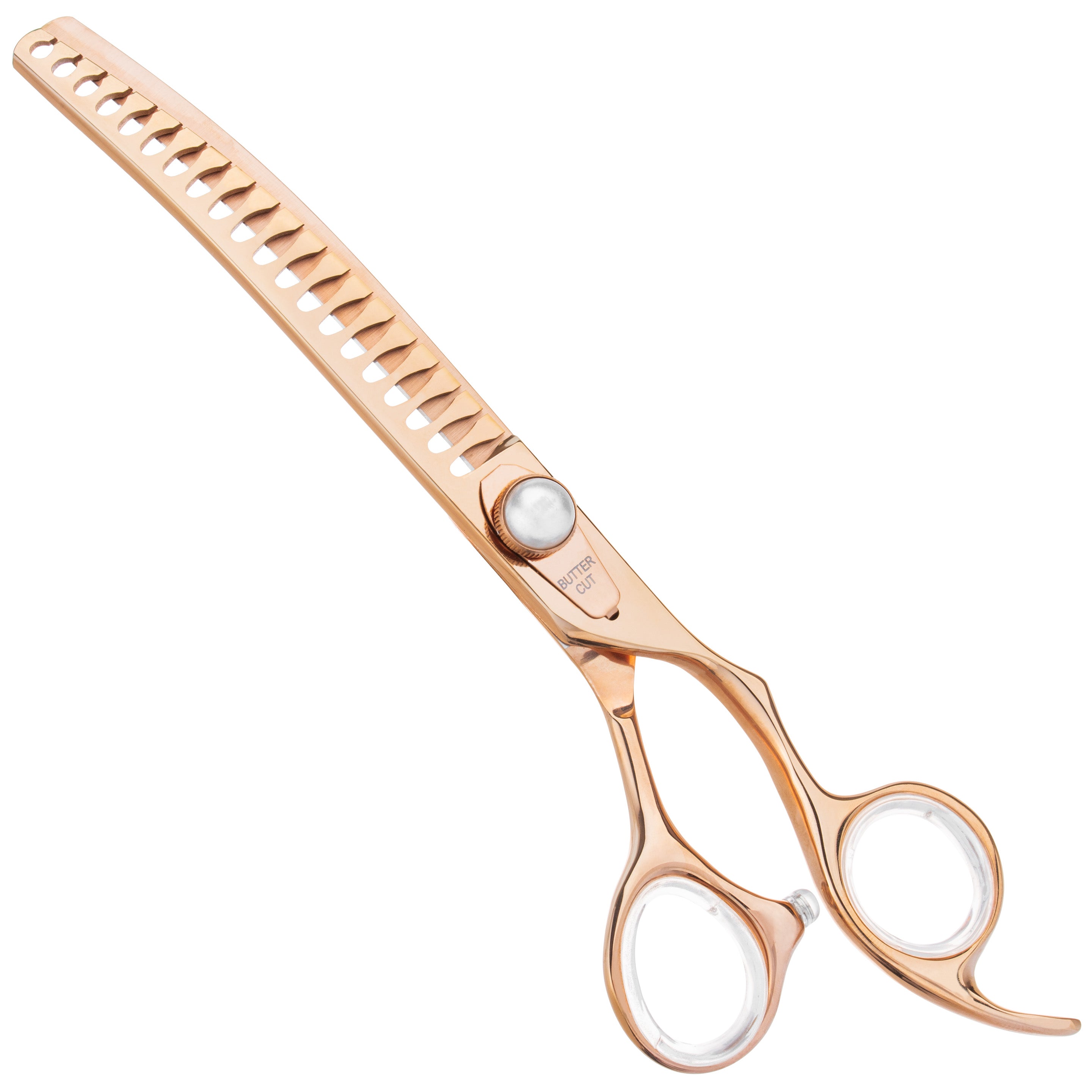 Geib Gold Pearl Curved Chunker 7.0" – Single-Sided Thinning Shears, 20 Teeth, Elegant Gold Finish