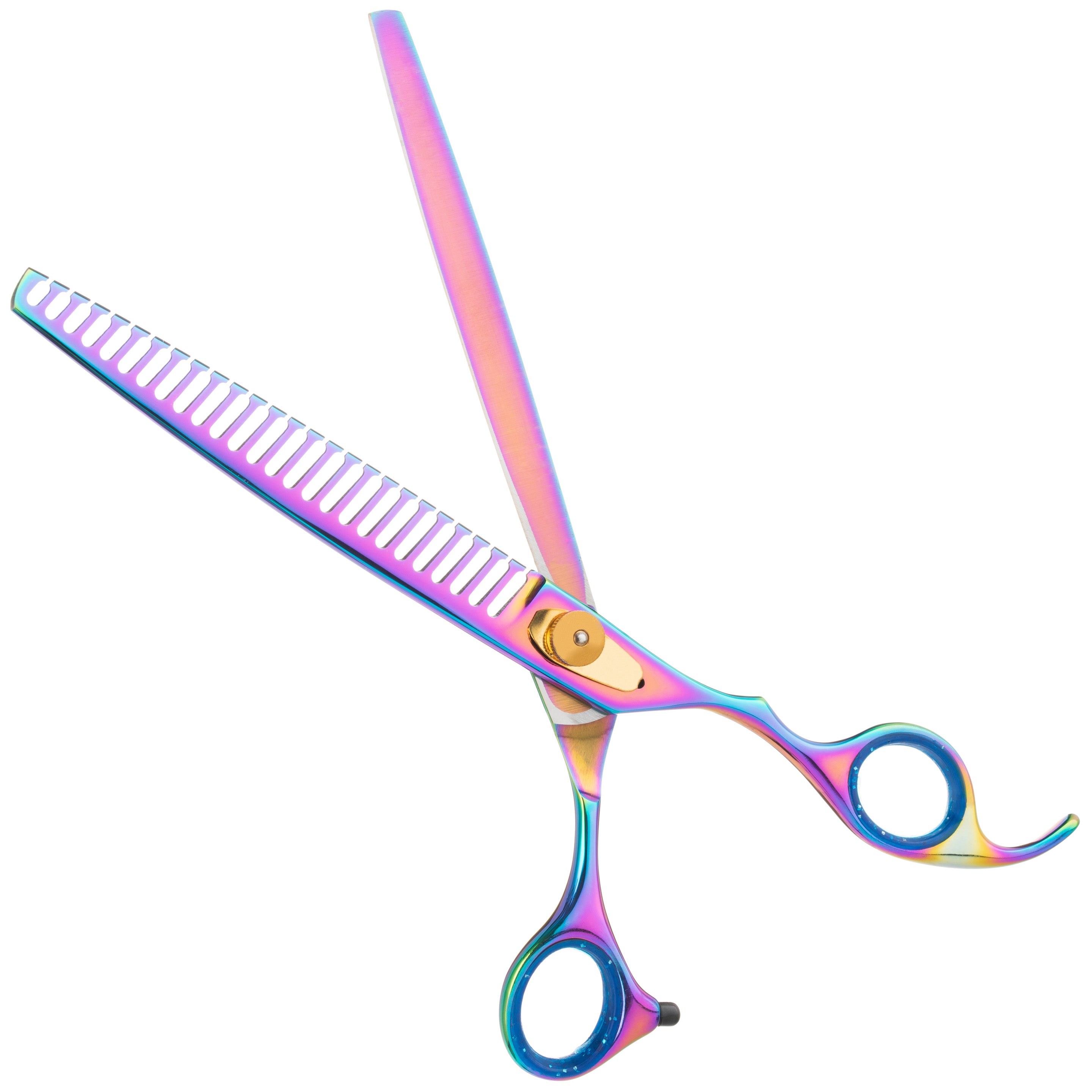 High-quality chunker grooming scissors with a beautiful rainbow finish, perfect for removing larger amounts of hair in one precise cut.... Read more