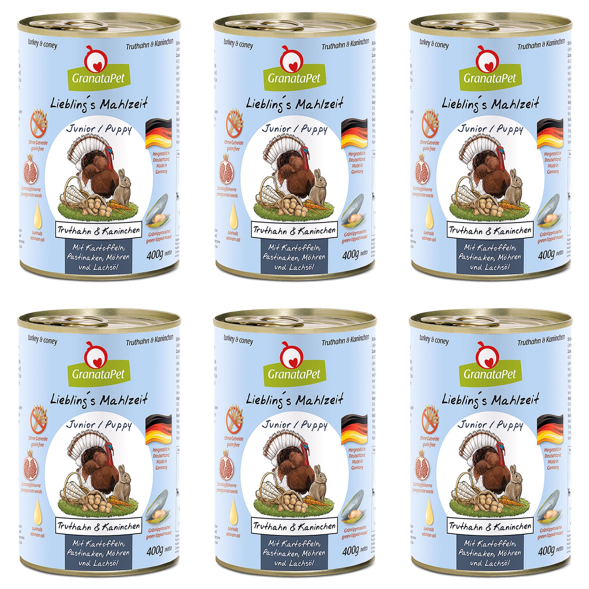 GranataPet Turkey & Coney Junior wet puppy food is a nutritious and balanced meal made from high-quality ingredients, supporting healthy puppy development.