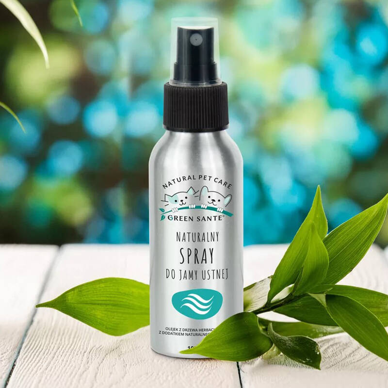 Natural GREEN SANTE® oral spray for dogs and cats is a solution for the daily care of your pet's teeth and gums. The natural silica abrasive used in the product effectively cleans the surface of the teeth, making them whiter.