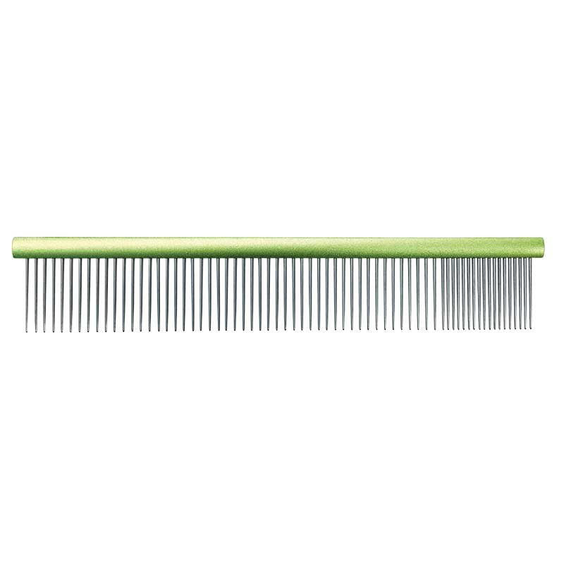 Groom Professional Metal Grooming Comb 19cm – Mixed Tooth Spacing, Green Handle