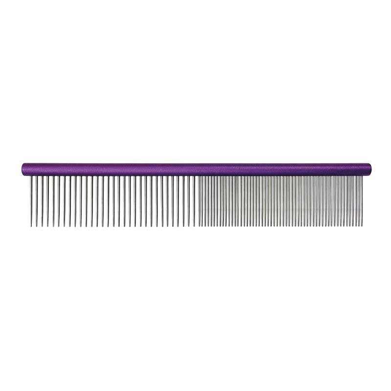 Groom Professional Metal Grooming Comb 25cm – Mixed Tooth Spacing, Durable Purple Finish