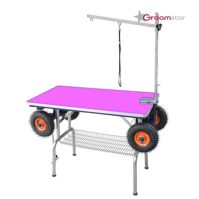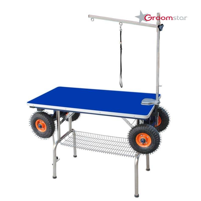 GroomStar Grooming Table – Large Inflatable Wheels, 110x60cm Blue Top, Stable Mobile Design
